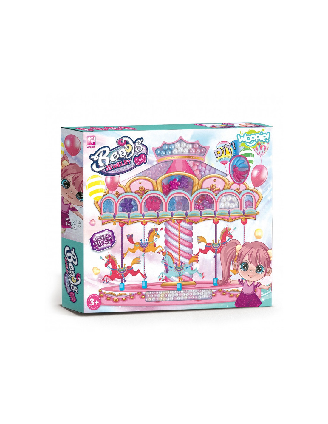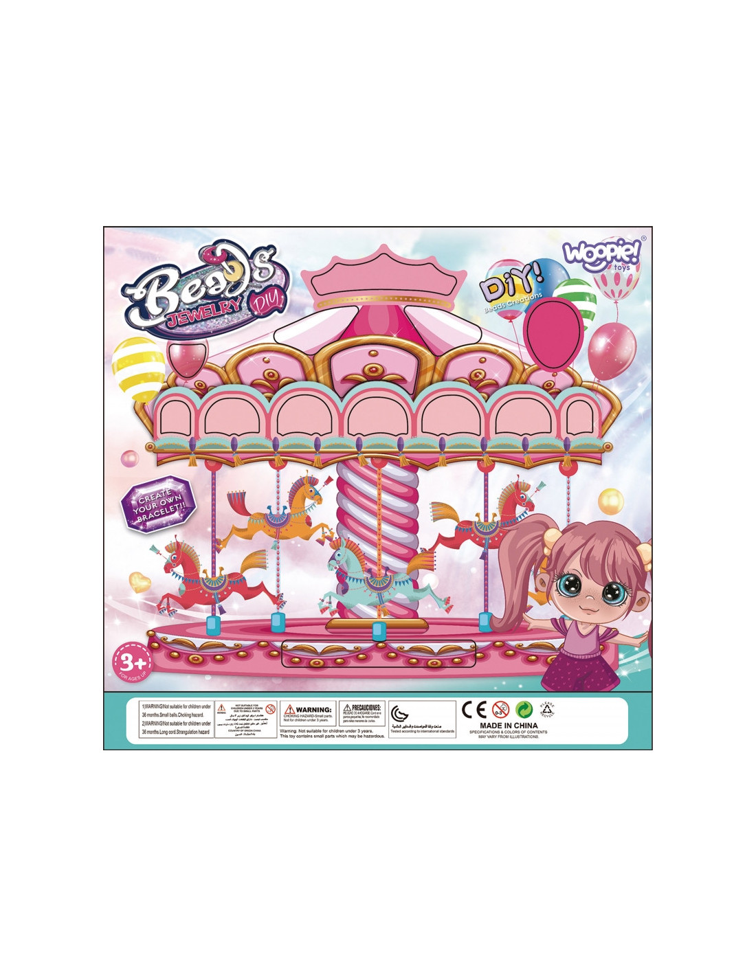 Zestaw do Robienia Biżuterii od marki WOOPIE jest stylowym, kreatywnym i zjawiskowym zestawem dla każdego dziecka. Dziecko samodzielnie może mieszać i dopasowywać różne koraliki oraz zawieszki, aby stworzyć swoją niepowtarzalną bransoletkę, pierścionek lub wisiorek. Zestaw zawiera różnego rodzaju elementy: koraliki różnej wielkości, zawieszki, elementy przypominające zwierzątka, oraz żyłki. Komplet zapakowany jest w kolorowe pudełko przedstawiające karuzele idealnie nadaje się na prezent. Po rozpakowaniu zestaw jest łatwy do przeniesienia- jest lekki i poręczny, co sprawia, że dziecko z łatwością może go zabrać ze sobą do przedszkola, do kolegi, do ogrodu. Opakowanie, również posiada formę organizera, co pozwoli na bezpieczne przechowywanie małych elementów znajdujących się w zestawie. Zabawa w tworzenie biżuterii pozytywnie wpływa na rozwój dziecka, kształtuje jego zdolności plastyczne wraz z rozwojem wyobraźni oraz kreatywności, ćwicząc jednocześnie koncentrację; rozwija zdolności manualne/motoryczne tzw. "małą motorykę" (ruch rączek), a także przy zabawie z przyjaciółmi uczy współpracy, dzielenia się i usprawnia zdolności społeczno-integracyjne.