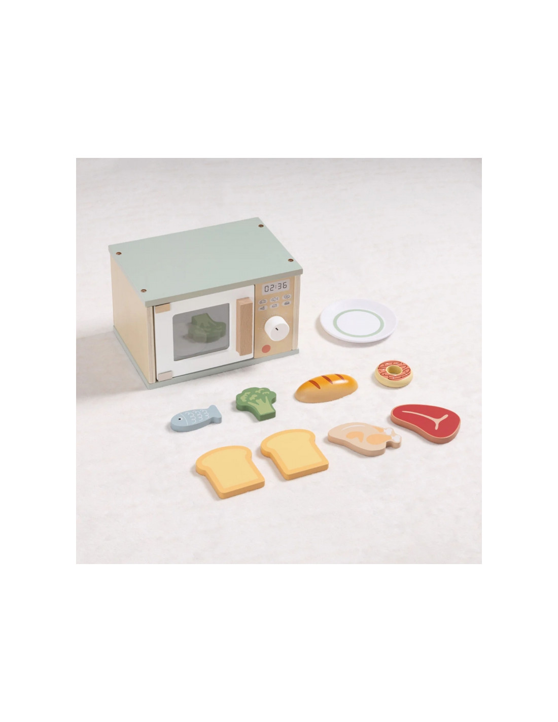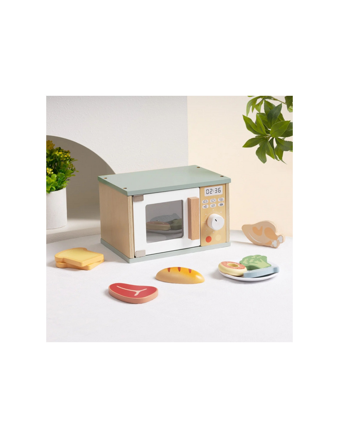 TOOKY TOY Drewniana Kuchenka Mikrofalowa Zestaw Produktów Spożywczych