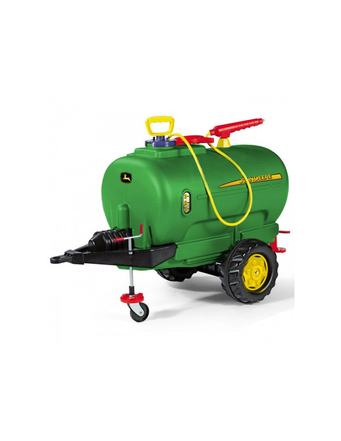 Przyczepa ta nadaje się do wszystkich traktorów ROLLY TOYS. Jest to cysterna, którą można napełnić wodą, a następnie za pomocą rozpylacza i pompki rozpylać. Z przodu przyczepy jest specjalne dodatkowe opuszczane kółko, które zabezpiecza przyczepę przed przewróceniem się, gdy jest odpięta od traktora.