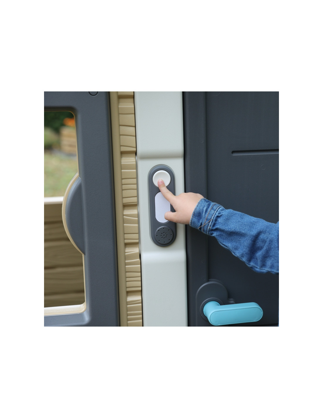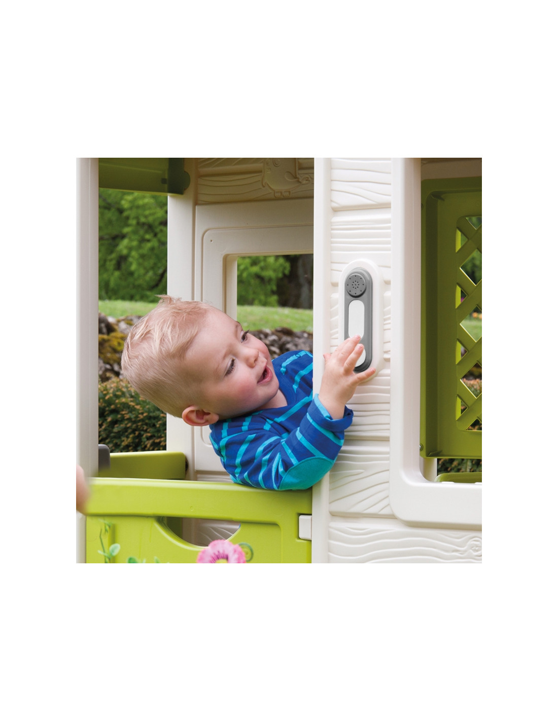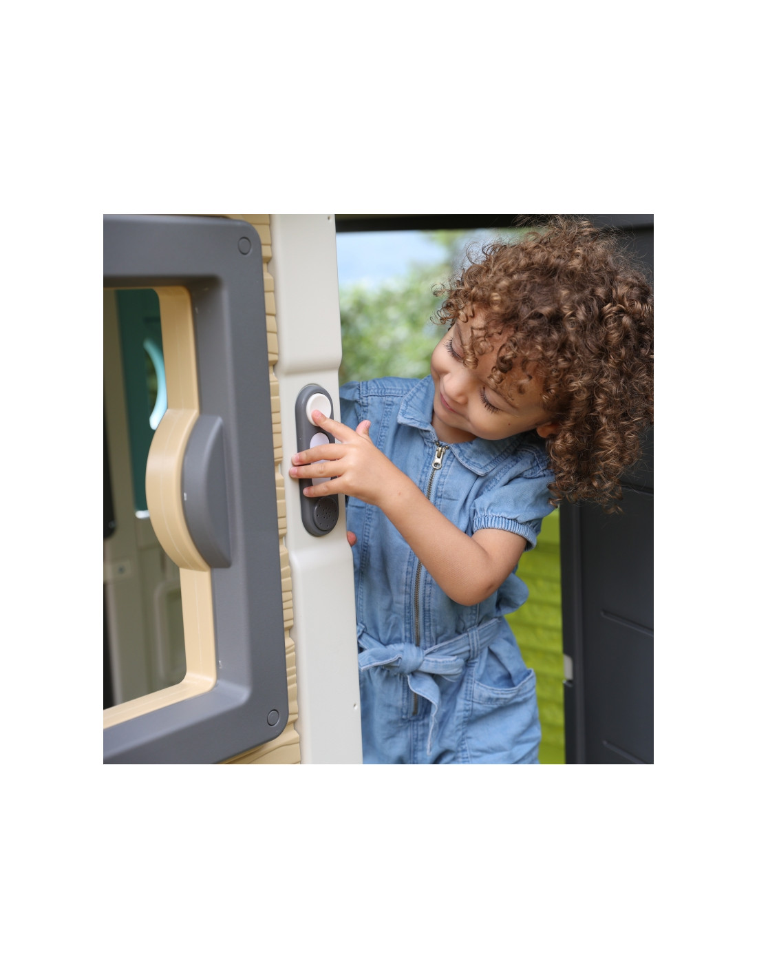 Elektroniczny Dzwonek Doorbell firmy Smoby to zabawka, która pasuje do wszystkich nowoczesnych domków ogrodowych tej marki: Jolie, Lovely, Nature, Pretty, Neo Jura Lodge, Friends House, Friends House Evo, 4 Seasons Playhouse, Sweety Corner Playhouse, Garden House Playhouse, Chef House Playhouse, Dom na Palach. Jest łatwy w montażu i pozwala dzieciom spersonalizować swój domek, pisząc na nim swoje imię. Dzięki dzwonkowi dzieci mogą zapraszać gości do swojego domu, słysząc realistyczny dźwięk dzwonka. Dzwonek ma szary kolor i mały głośnik. Potrzebuje 2 baterii AAA/LR03 (nie dołączonych do zestawu).