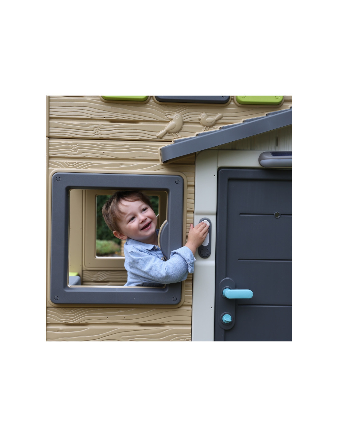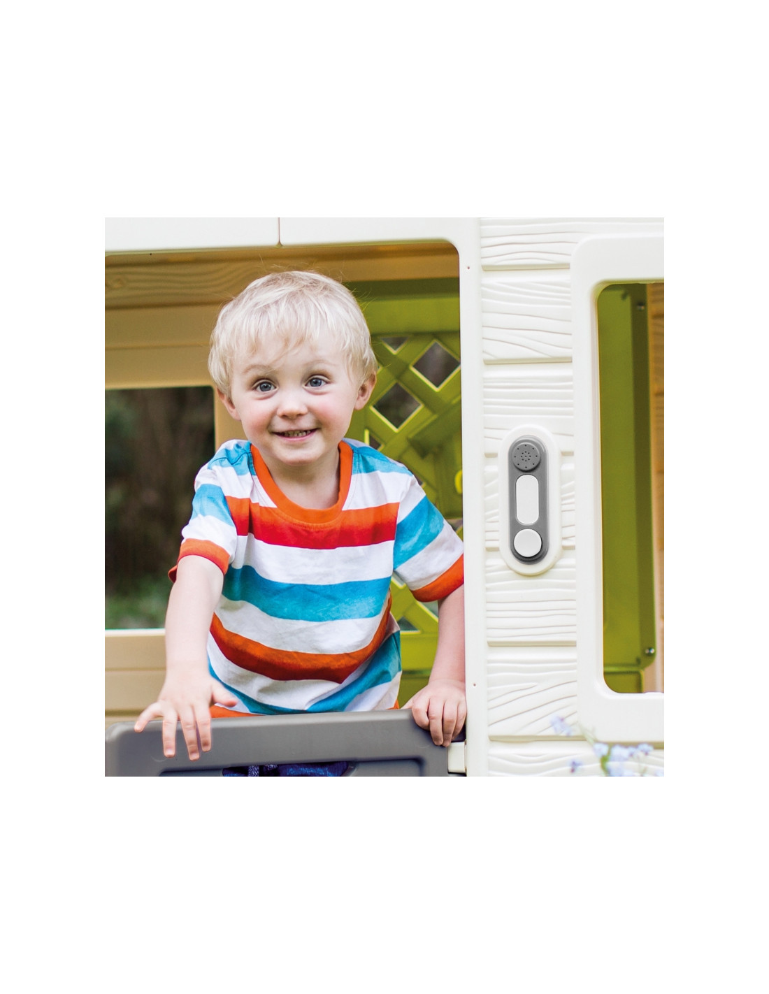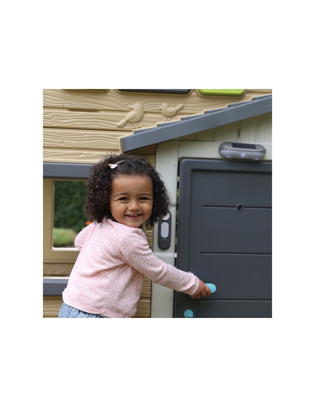 Elektroniczny Dzwonek Doorbell firmy Smoby to zabawka, która pasuje do wszystkich nowoczesnych domków ogrodowych tej marki: Jolie, Lovely, Nature, Pretty, Neo Jura Lodge, Friends House, Friends House Evo, 4 Seasons Playhouse, Sweety Corner Playhouse, Garden House Playhouse, Chef House Playhouse, Dom na Palach. Jest łatwy w montażu i pozwala dzieciom spersonalizować swój domek, pisząc na nim swoje imię. Dzięki dzwonkowi dzieci mogą zapraszać gości do swojego domu, słysząc realistyczny dźwięk dzwonka. Dzwonek ma szary kolor i mały głośnik. Potrzebuje 2 baterii AAA/LR03 (nie dołączonych do zestawu).