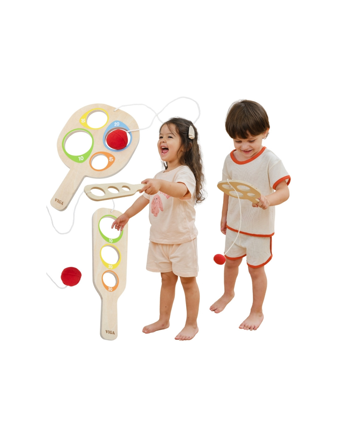 VIGA Drewniany Zestaw Paletek do Gry Złap Piłkę z Punktacją