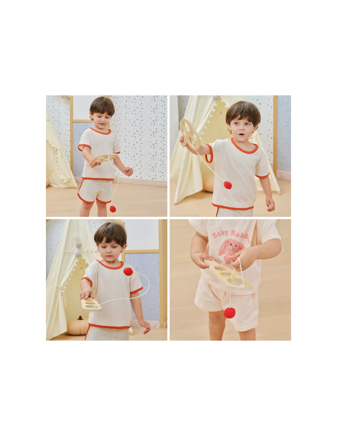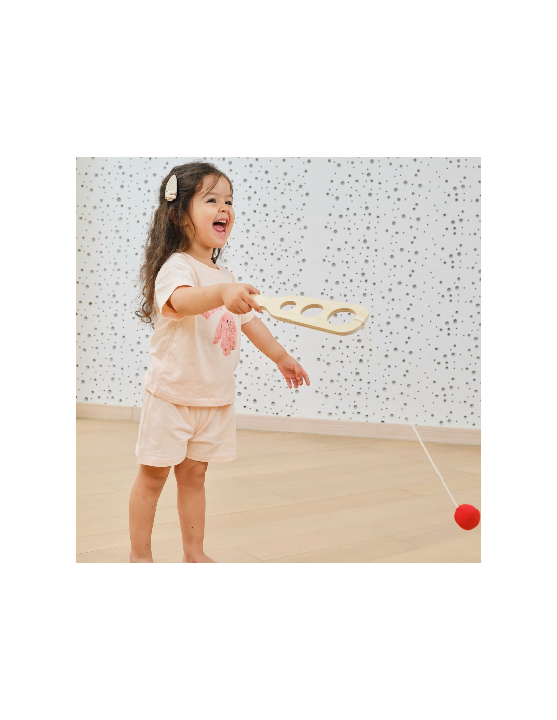 - - Zestaw zawiera dwie drewniane paletki i dwie piłki/woreczki na sznurkach.