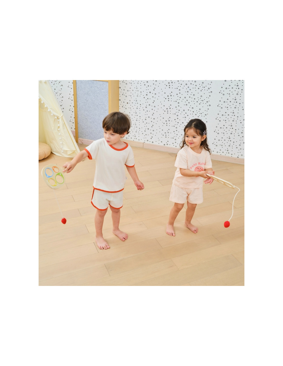 - - Piłki są miękkie i trwale przymocowane sznurkami, co zapewnia bezpieczeństwo i uniemożliwia zgubienie.