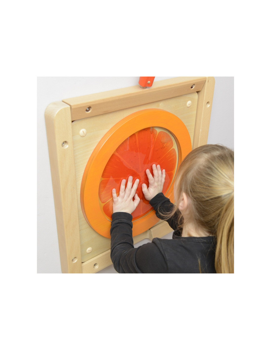 - - Panel ścienny w kolorze pomarańczowym zachęca dzieci do treningu sensorycznego i dotykowego
