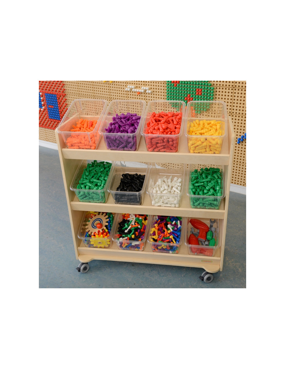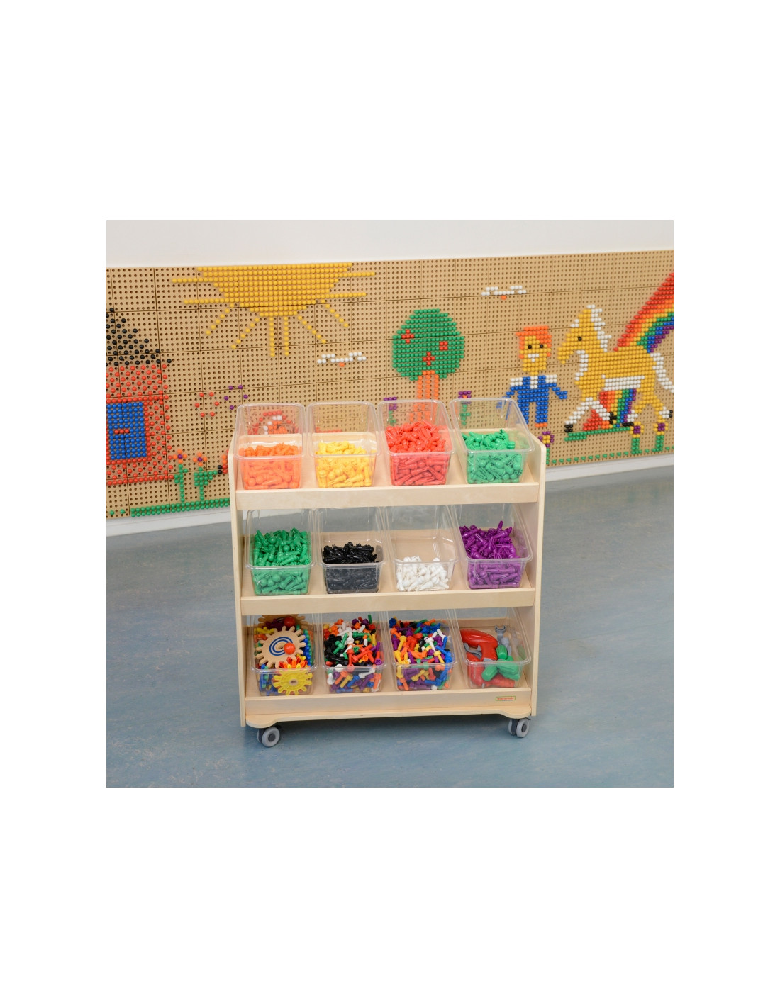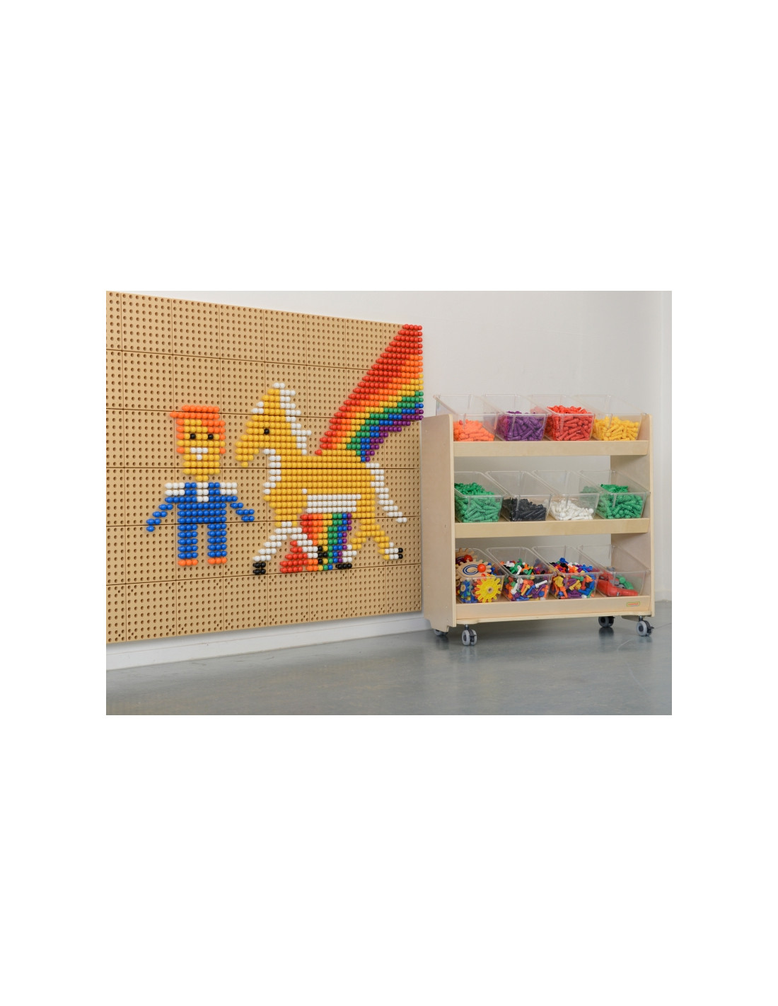 Mobilny regał na kółkach ME29959 to nowoczesny i solidny element wyposażenia każdej sali edukacyjnej. Zaprojektowany z myślą o wygodzie najmłodszych użytkowników, pozwala na łatwe przechowywanie i organizację drobnych oraz średnich elementów, takich jak śrubki, nakrętki czy kołki. Dzięki eleganckiemu wyglądowi i funkcjonalności, idealnie komponuje się z przestrzenią edukacyjną, zachęcając dzieci do samodzielności i kreatywności podczas zajęć.