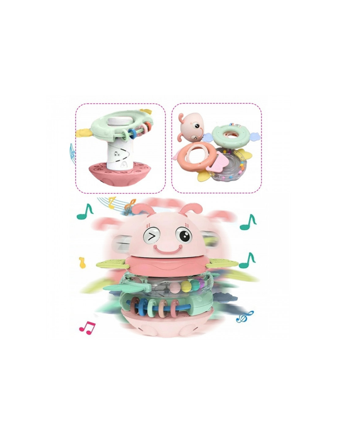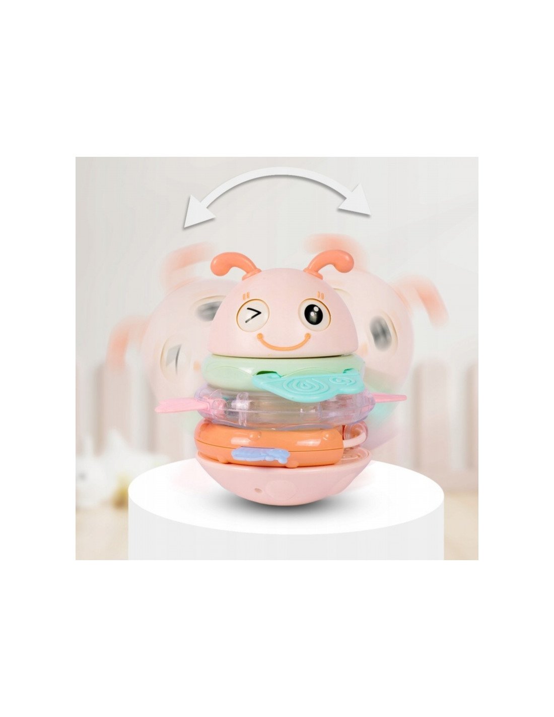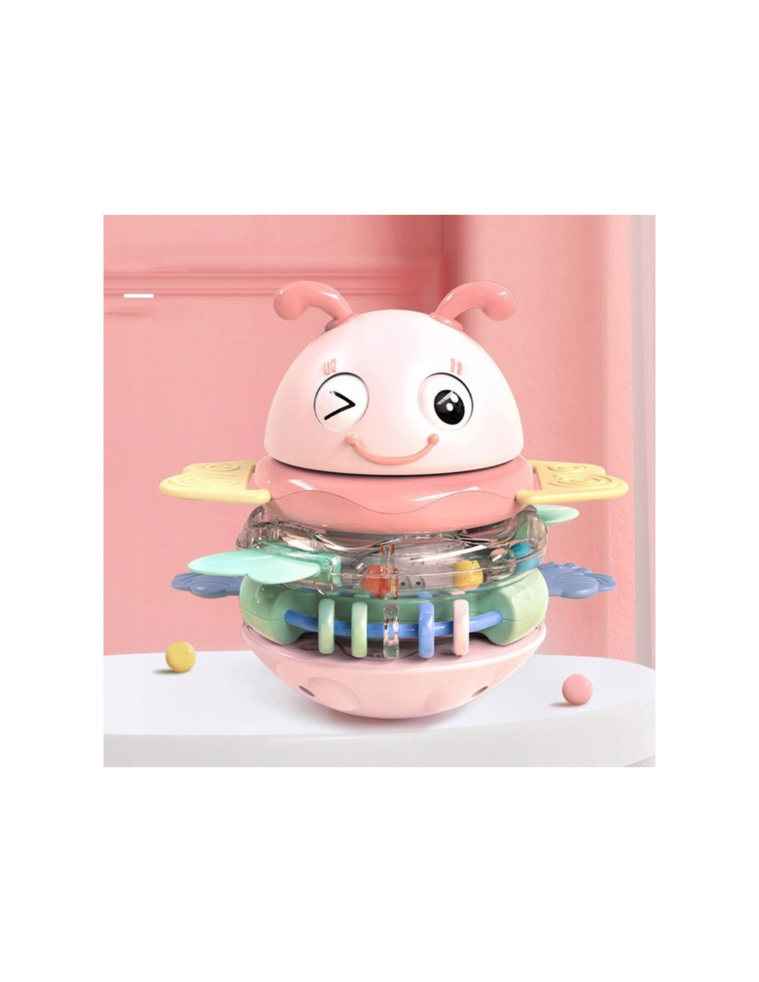 WOOPIE Baby Wańka Wstańka Zabawka Sensoryczna 2w1 Grzechotka Gryzak Różowa