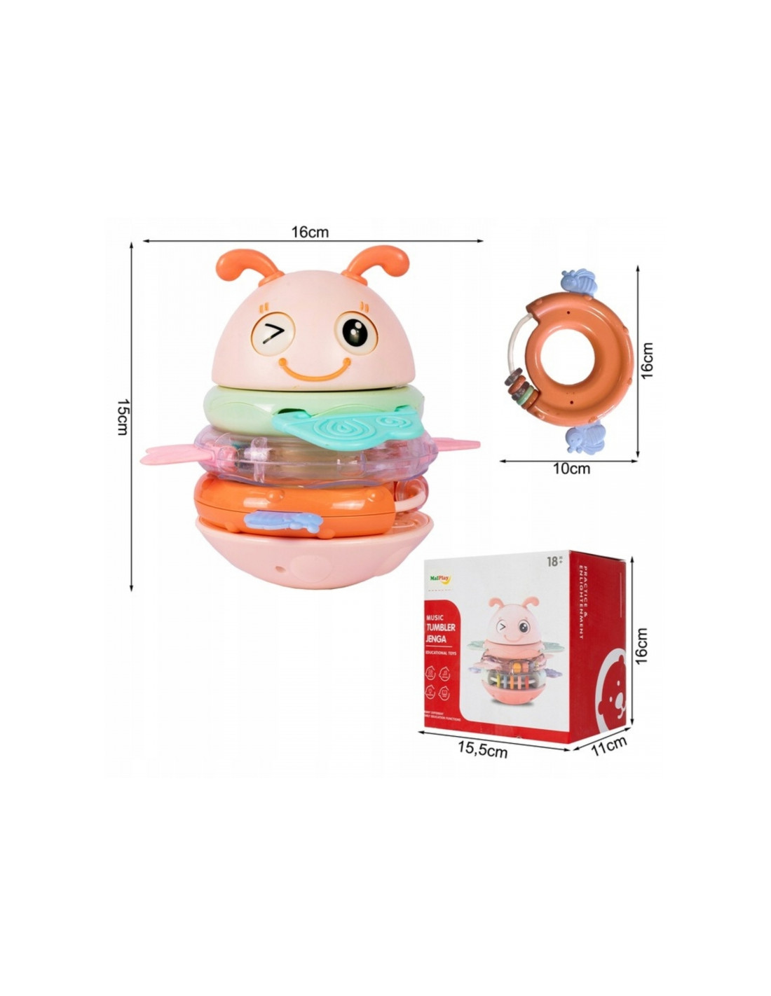 - - Muzyczne efekty – zabawka gra po założeniu każdej obręczy