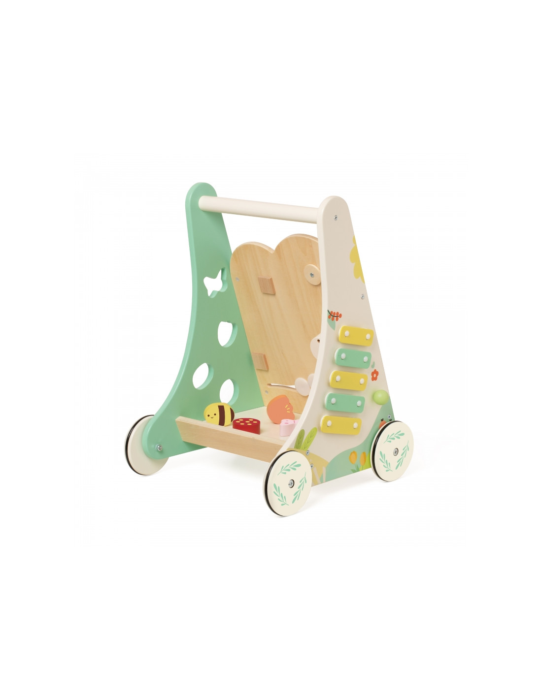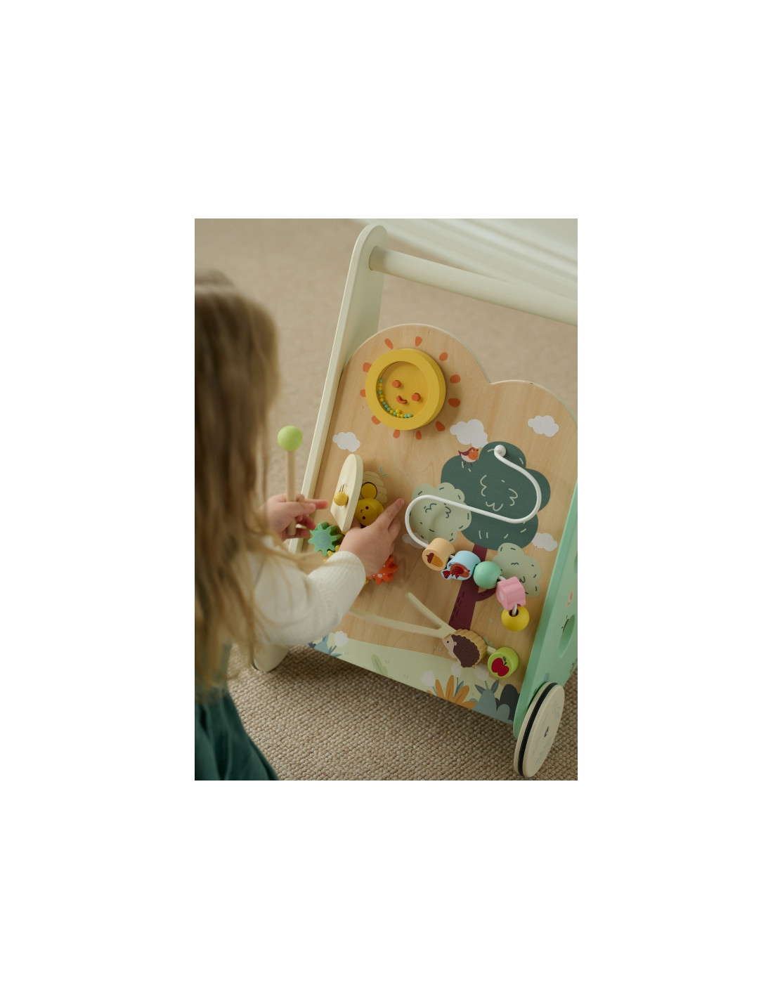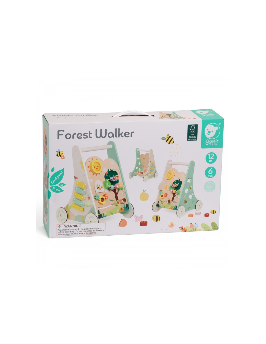 Pozwól odkrywać swojemu dziecku świat pełen magii i nauki, z "Leśnym Chodzikiem" od renomowanej marki Classic World. Drewniany pchacz zaprojektowano tak, aby wspierać pierwsze kroki dziecka, jednocześnie rozwijając jego zmysły i zdolności motoryczne. Z każdym przesunięciem koralika, obrotem zębatki czy uderzeniem w cymbałki - maluch poznaje, jak działa otaczający go świat, a jednocześnie wzmacnia swoje rączki i koordynację. Chodzik będzie towarzyszył Twojemu dziecku w stawianiu pierwszych kroków. Dzięki temu, że zabawka została wykonana z drewna jest stabilna, co daje poczucie bezpieczeństwa. Pchacz posiada gumowe uszczelki na kółkach, które umożliwiają łatwe i ciche prowadzenie. Elementy zostały pomalowane bezpiecznymi dla dziecka farbami w piękne kolory, które zadowolą każdego użytkownika i dadzą mnóstwo radości z zabawy.