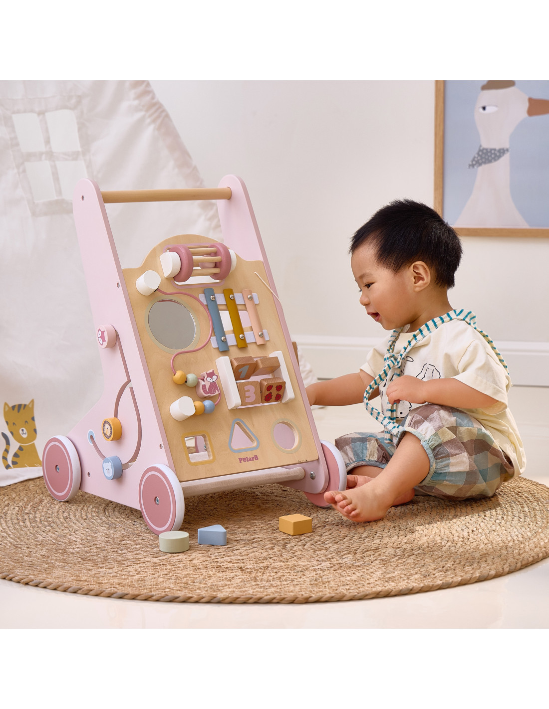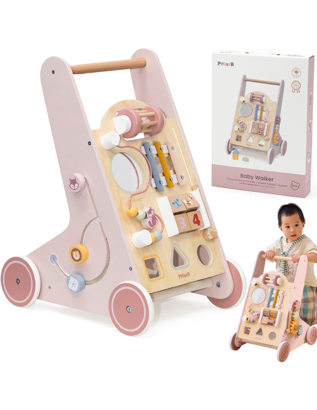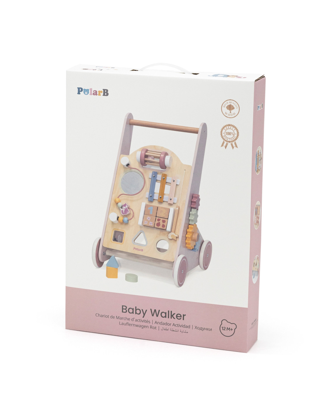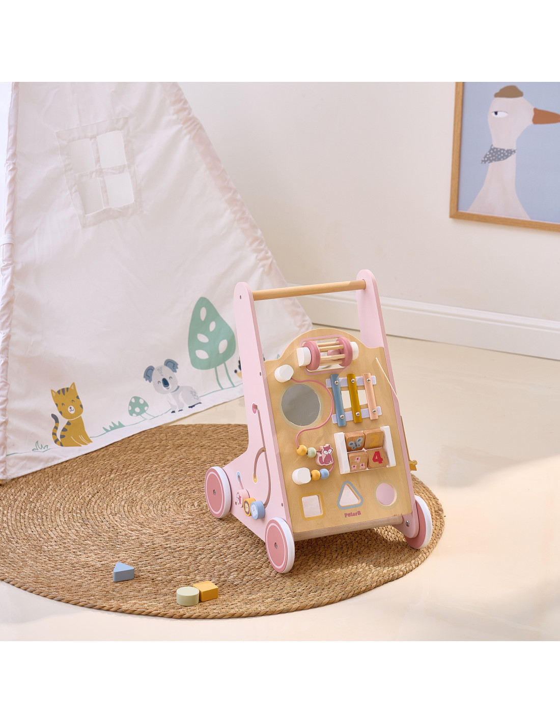 VIGA PolarB Wooden Push Walker Pink Educational