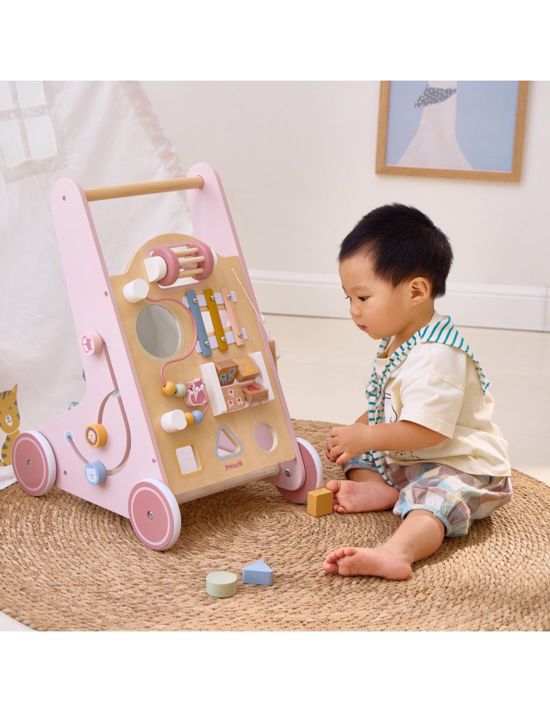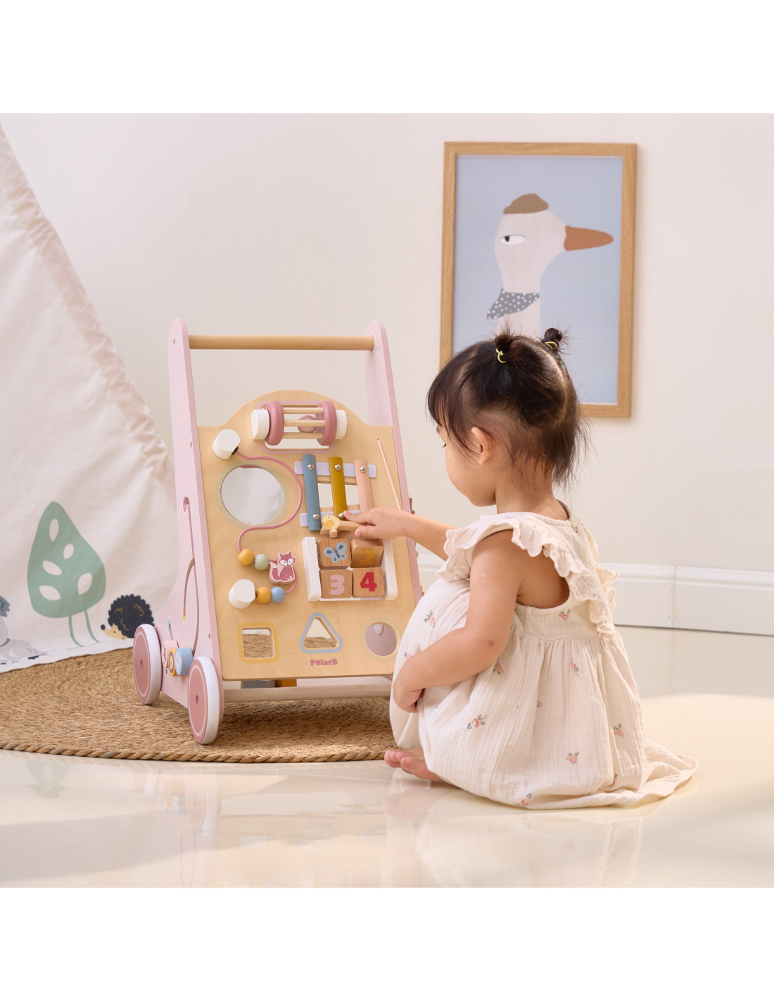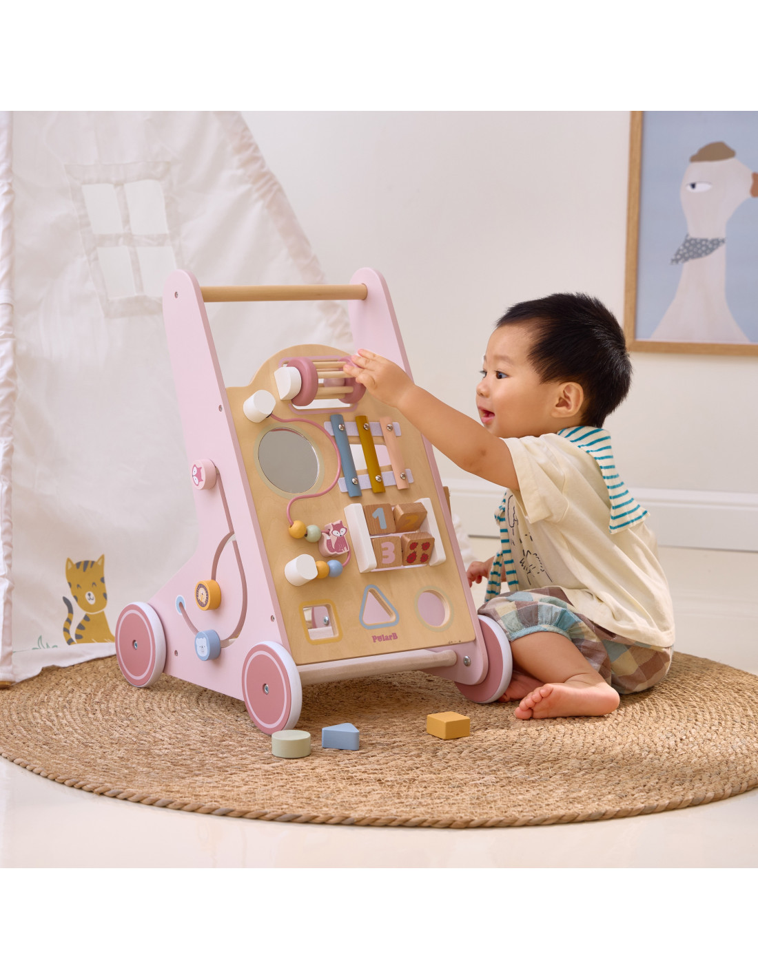 VIGA PolarB Wooden Push Walker Pink Educational
