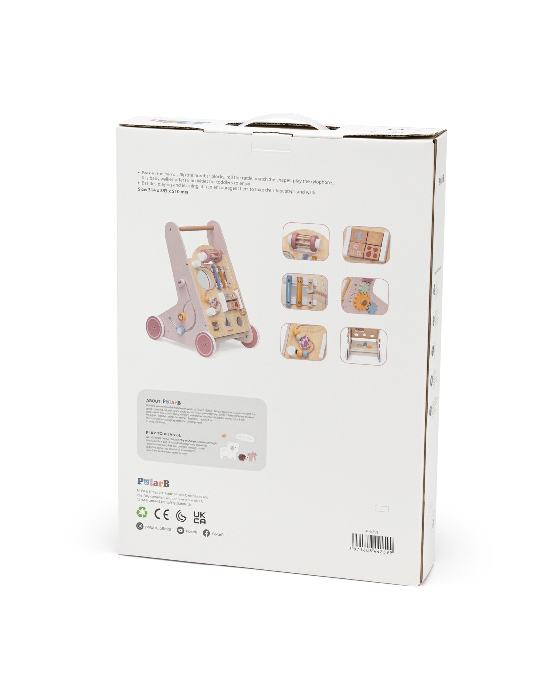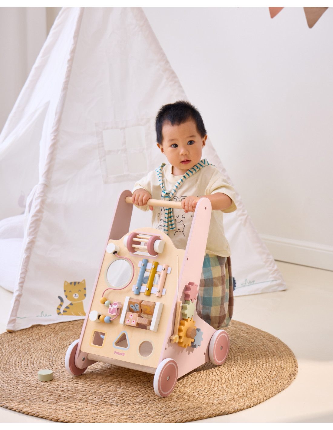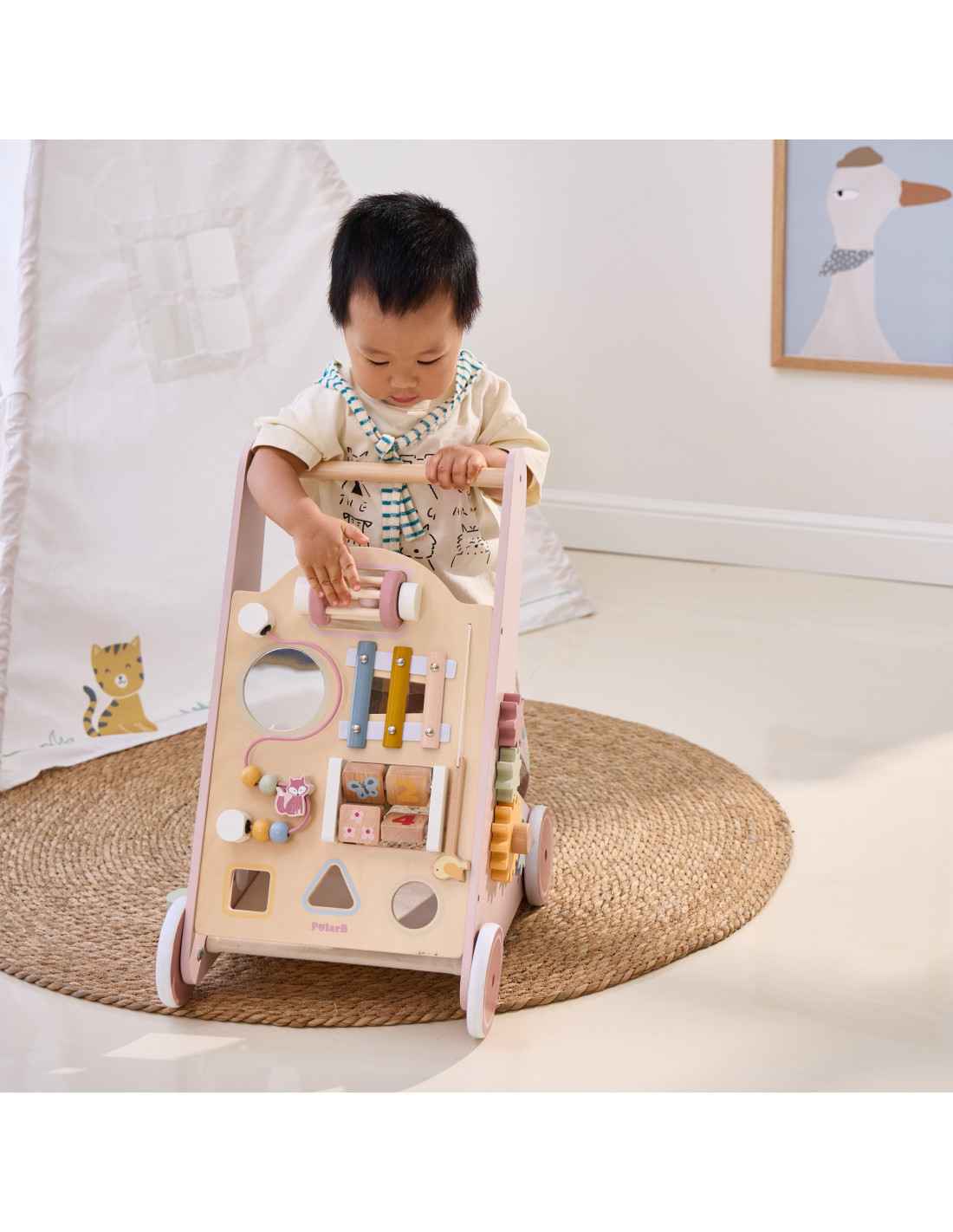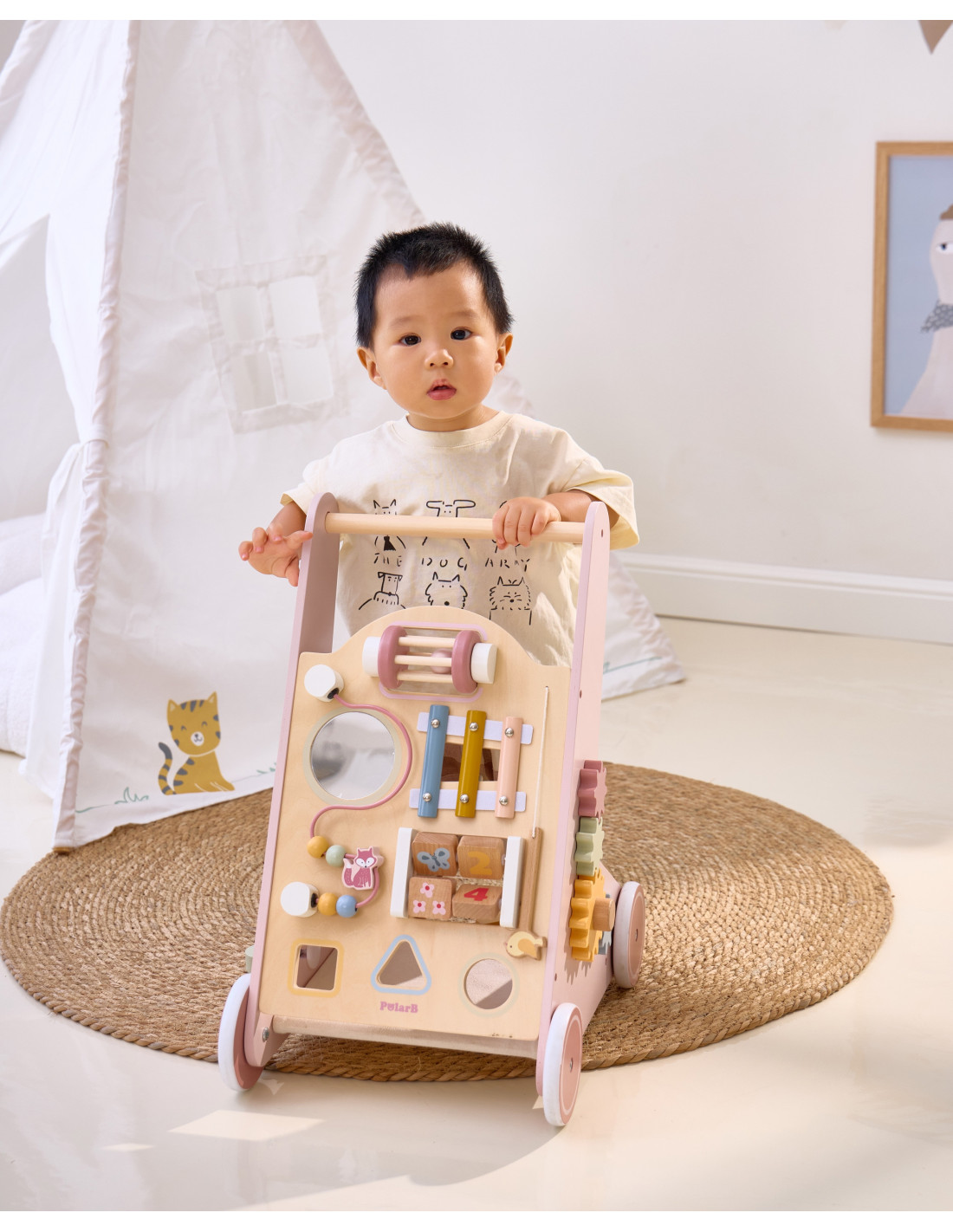 VIGA PolarB Wooden Push Walker Pink Educational