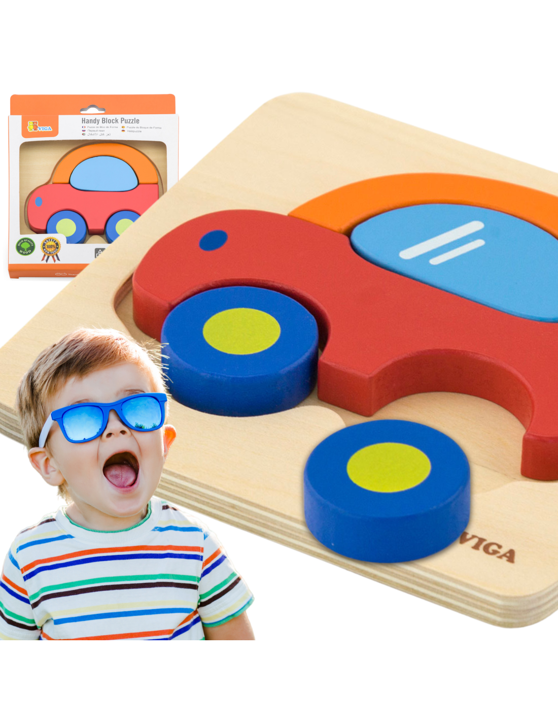 VIGA Baby's First Wooden Puzzle Car