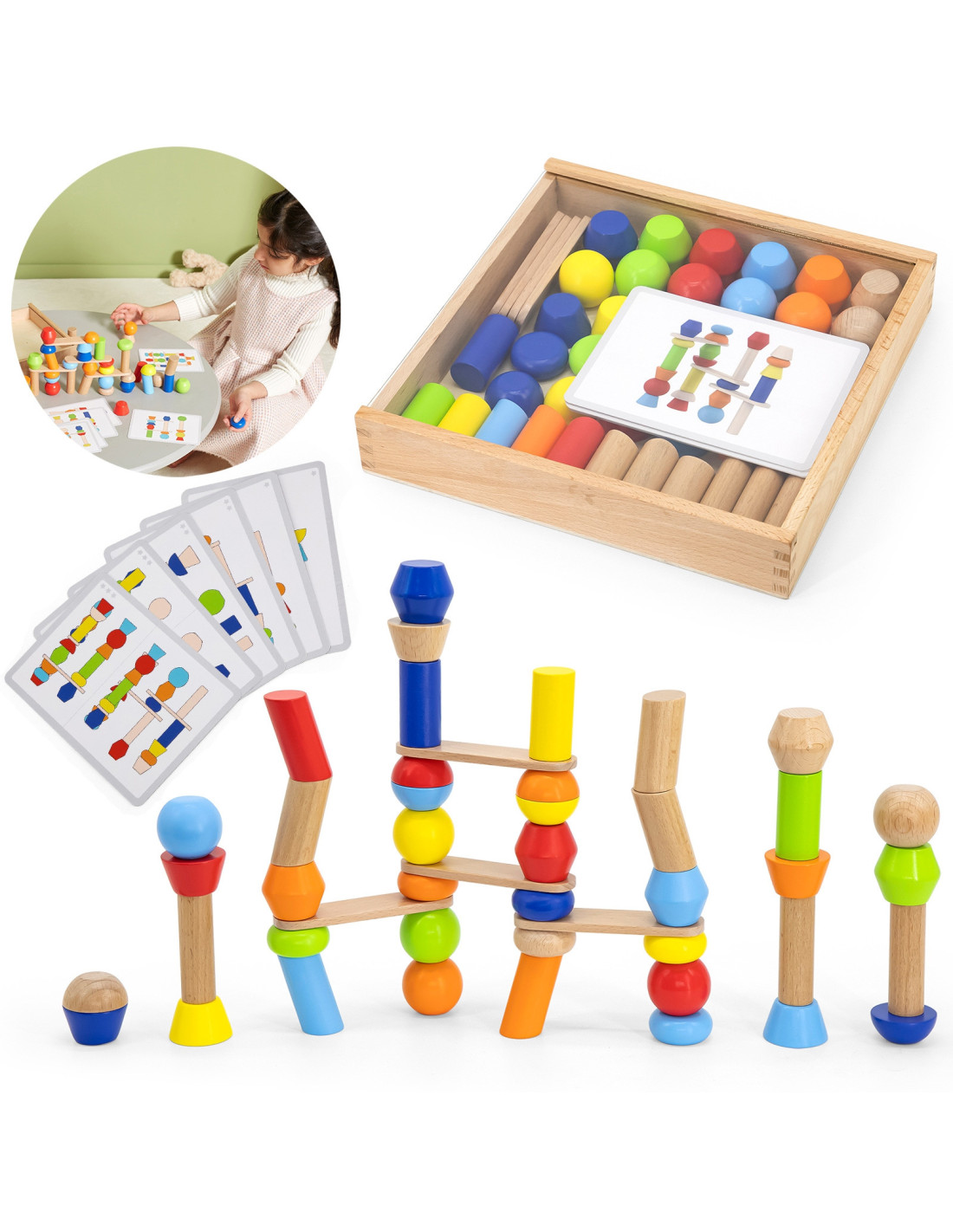 VIGA Wooden Geometric Blocks Puzzle 52 pcs.