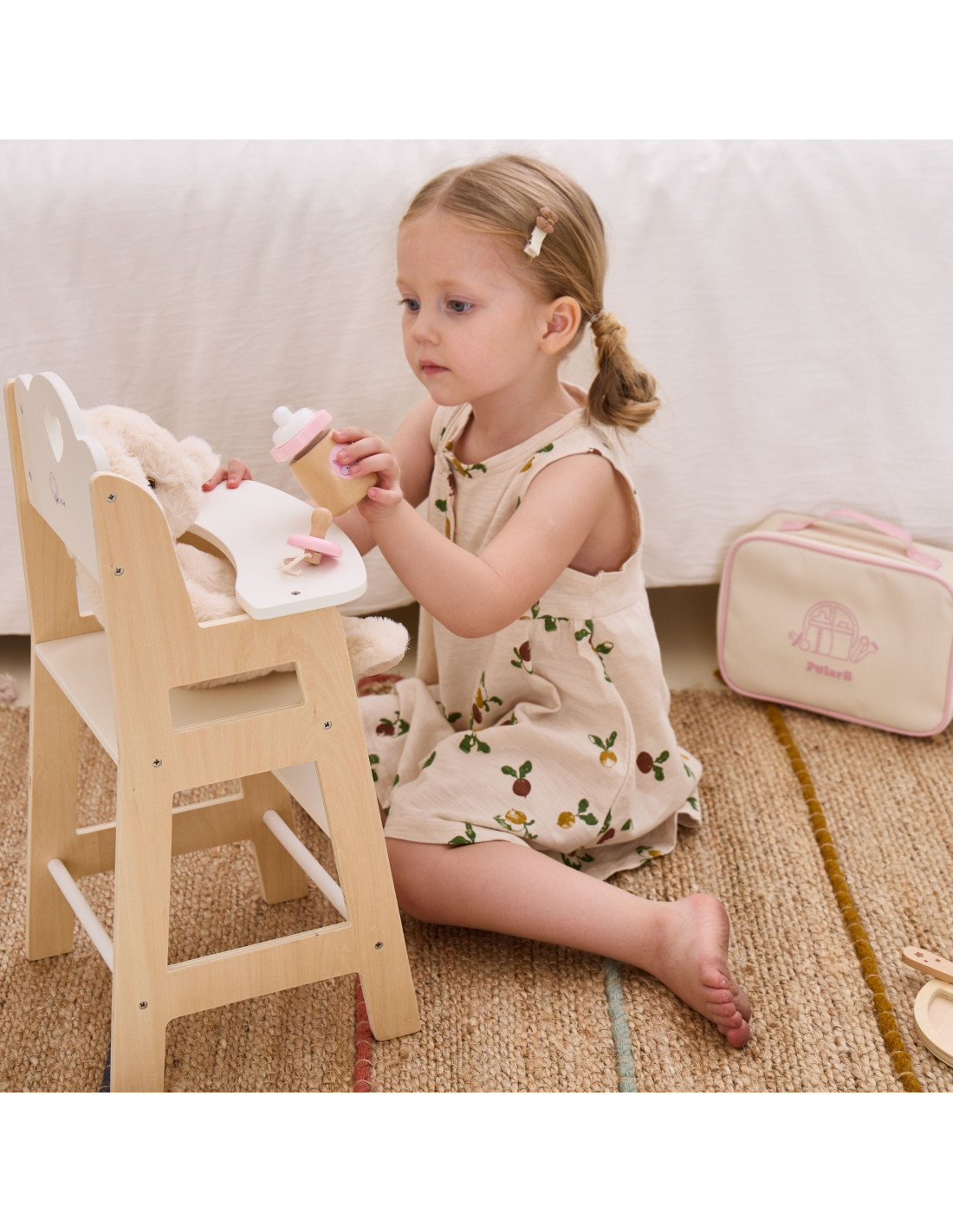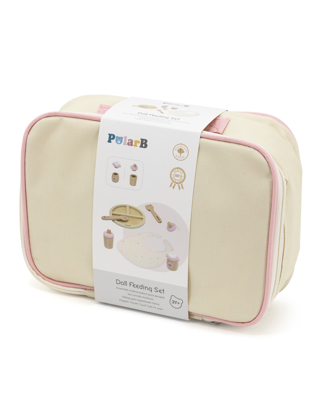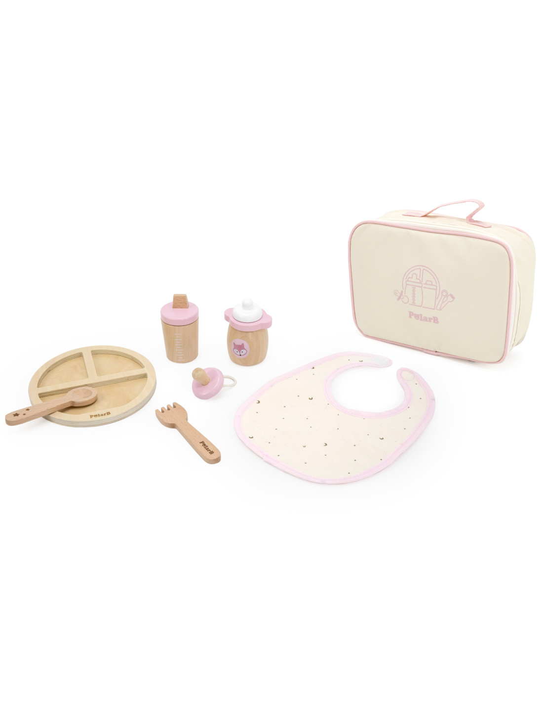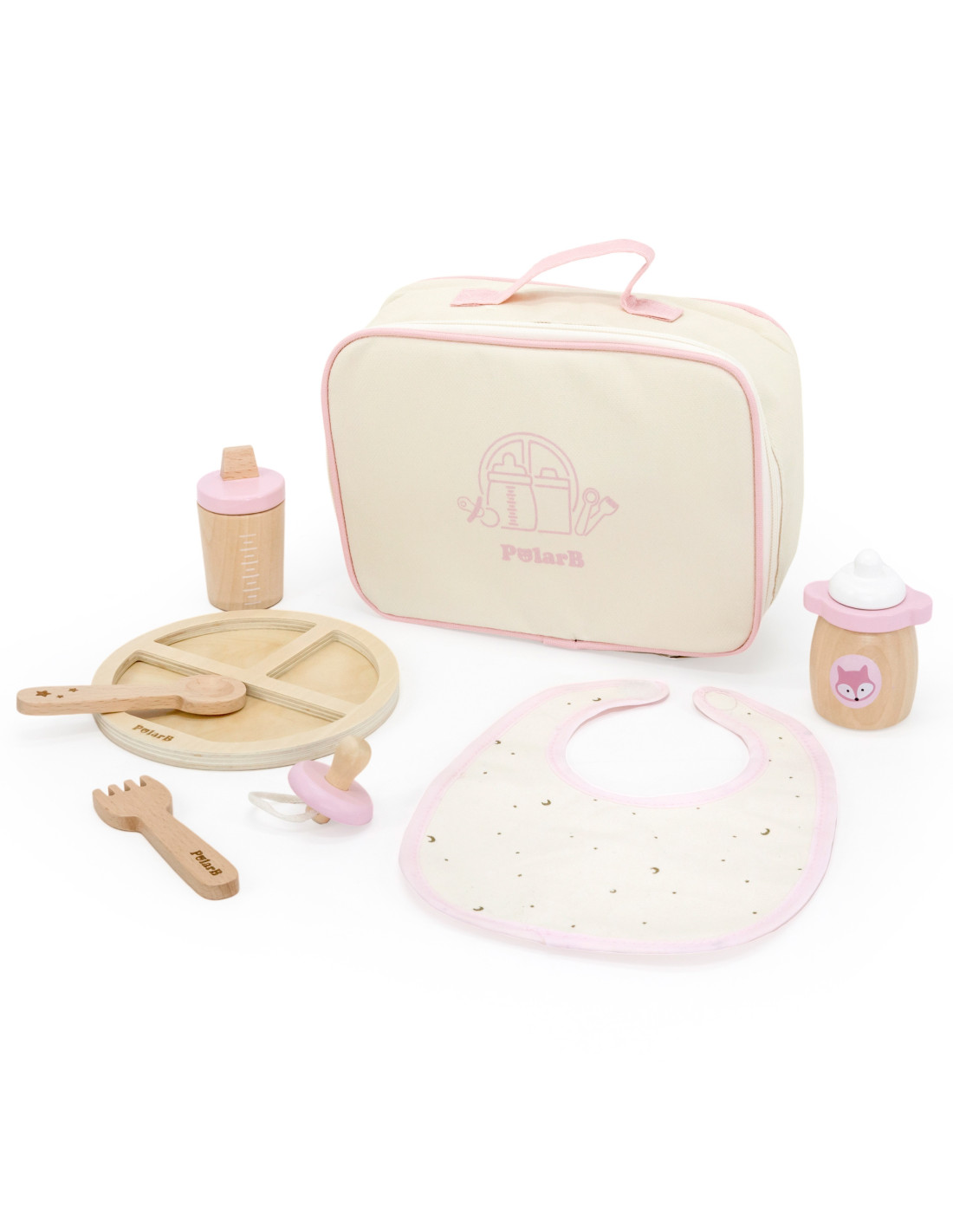 VIGA PolarB Wooden Doll Feeding Bag Set - with Bottle and Bib