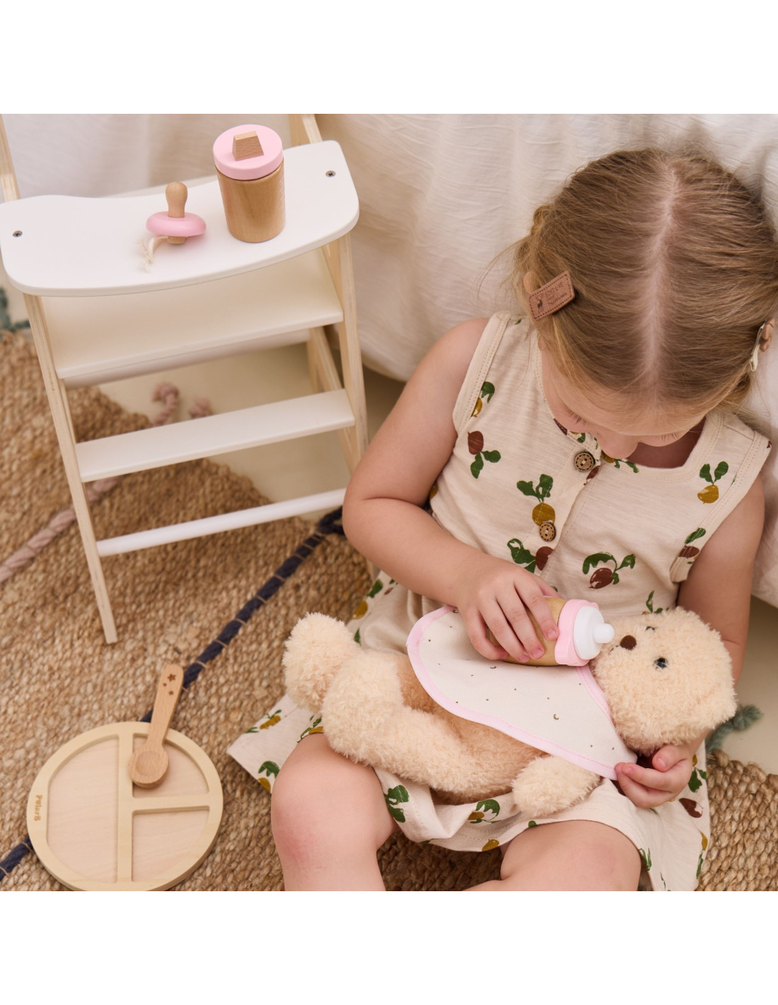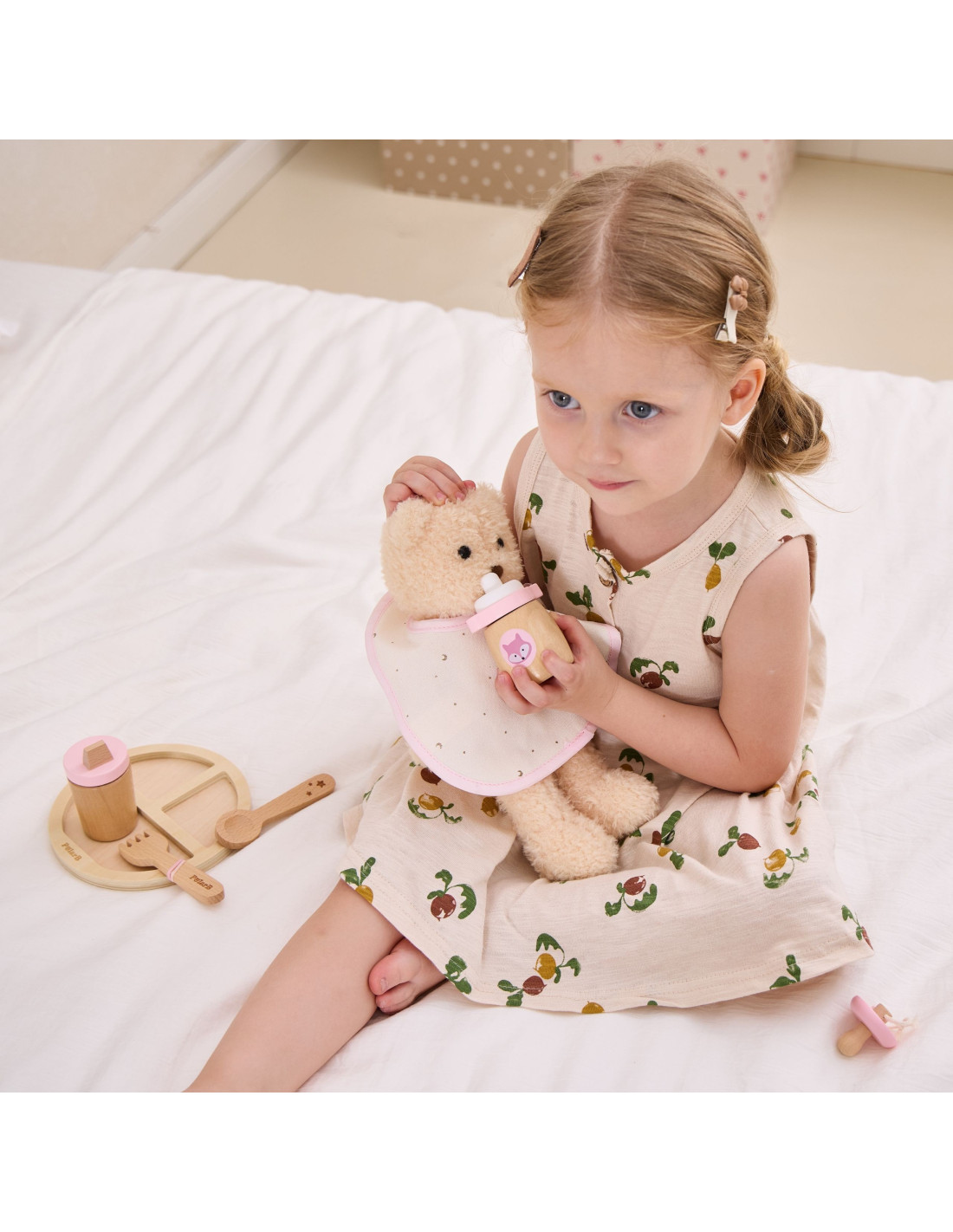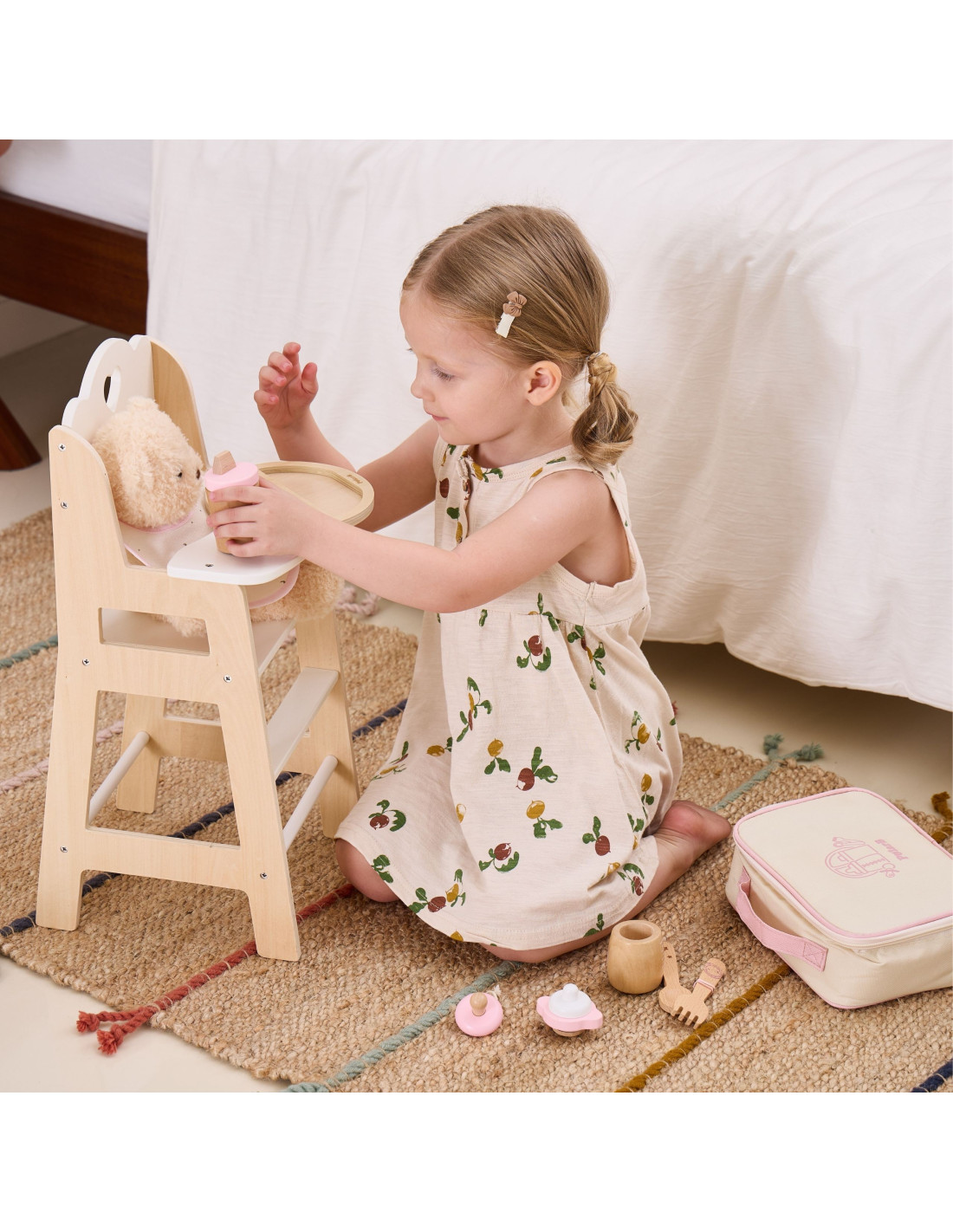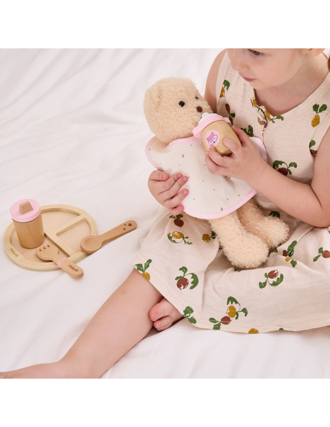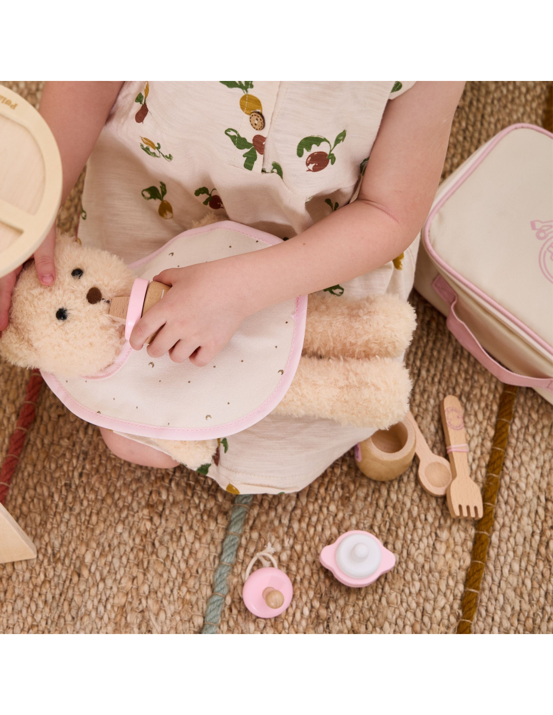 VIGA PolarB Wooden Doll Feeding Bag Set - with Bottle and Bib
