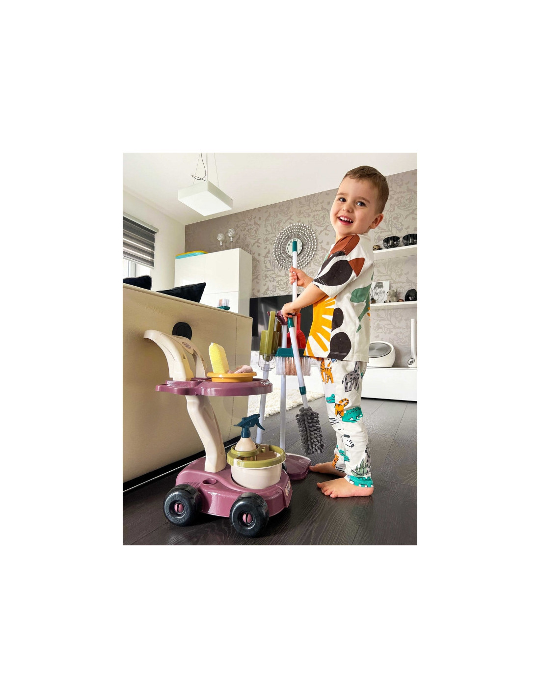 Zestaw sprzątający od renomowanej marki Woopie to idealny pomysł na prezent dla małego dziecka. Ten wysoce profesjonalny zestaw jest odwzorowaniem prawdziwych sprzętów służących dorosłym do robienia porządków. Brązowy wózek został wyposażony w dodatkowe akcesoria, aby dziecko mogło pomóc rodzicom w sprzątaniu. Zabawa w sprzątanie od najmłodszych lat może być świetnym sposobem, aby nauczyć się dbać o czystość. Maluchy uwielbiają naśladować dorosłych, a z takim zestawem będzie to dużo prostsze!
