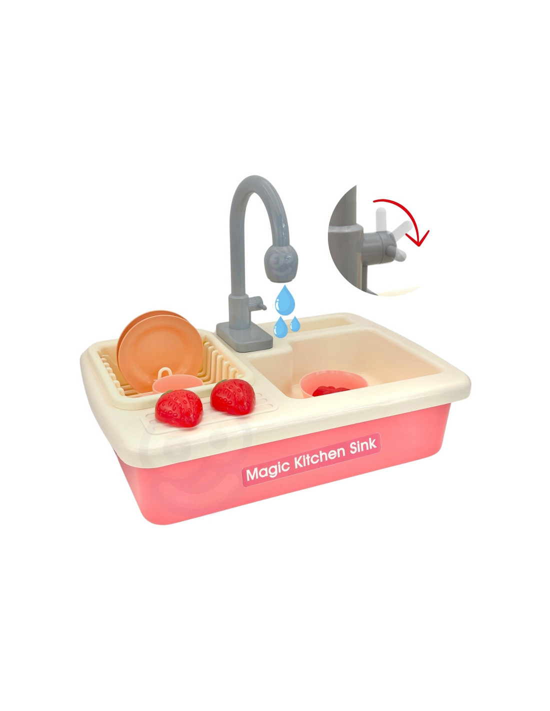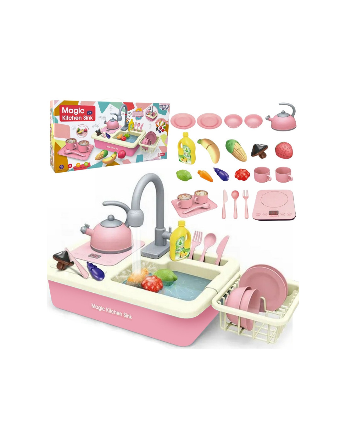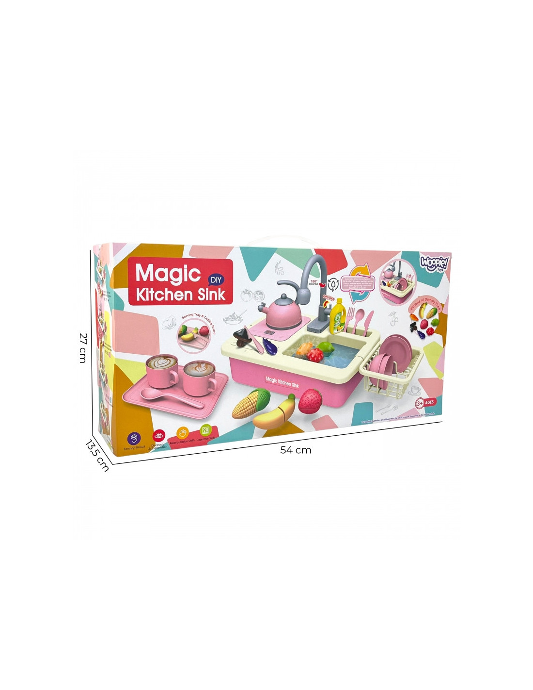 Zlewozmywak Kuchenka 2w1 od marki WOOPIE pozwoli dzieciom gotować i zmywać tak jak ich rodzice - naśladować od najmłodszych lat! Zabawka jest doskonale odwzorowana, dzięki czemu dziecko ma wrażenie, że wykonuje prawdziwe czynności kuchenne.Posiada ruchome elementy jak kurek od kranu, z którego leci prawdziwa woda. Wystarczy wlać do misy modę i zobaczyć jak dziecko się bawi, a po wszystkim wystarczy opróżnić dolną misę. Dodatkowo owoce i warzywa są połączone rzepem, dzięki czemu twoje dziecko może przekroić je na pół, jak prawdziwe produkty! Zabawa w gotowanie, zmywanie naczyń i wykonywanie podobnej pracy, pomaga dzieciom nabrać poczucia odpowiedzialności i samodzielności, która jest ważną częścią uczenia się społeczno-emocjonalnego.