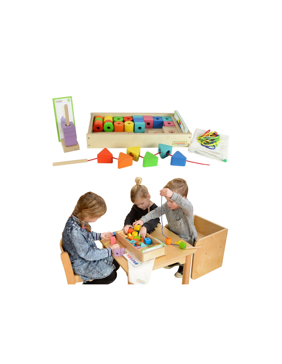 Zestaw do sznurowania marki Masterkidz to komplet różnorodnych, kolorowych koralików, oraz sznurków. Jest to jeden z 3 dostępnych zestawów do sznurowania marki Masterkidz. Można go dowolnie łączyć z pozostałymi dwoma, żeby zabawa była jeszcze ciekawsza i różnorodna.