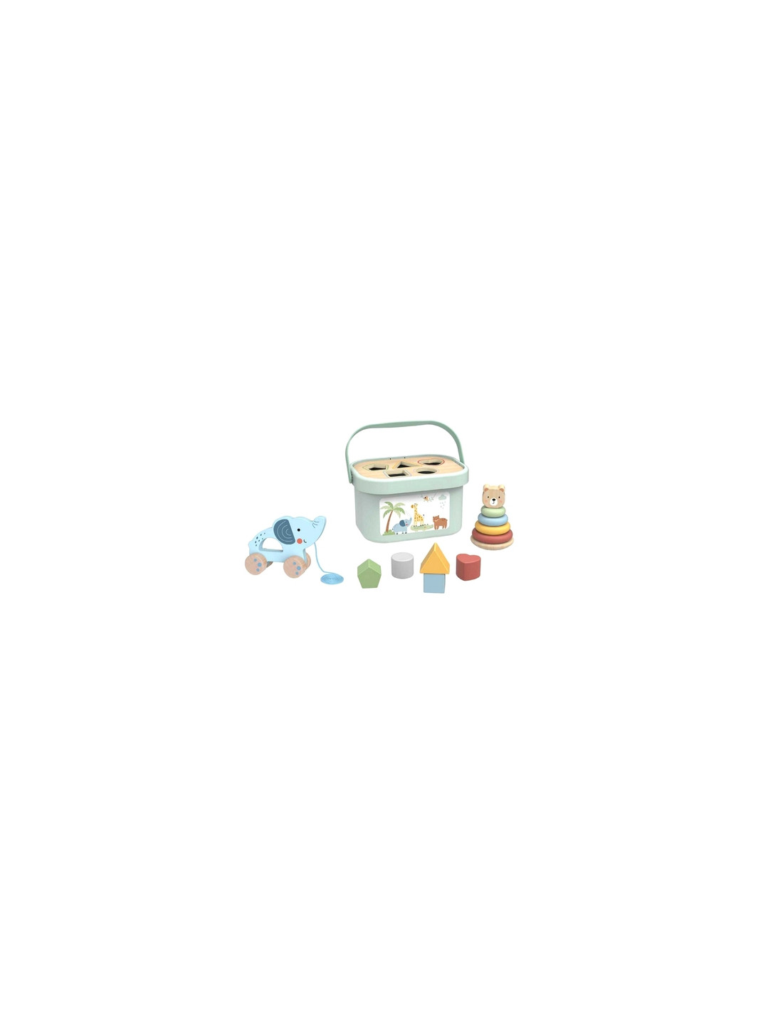 Zestaw 3w1 od WOOPIE GREEN to klasyczna i wszechstronna zabawka edukacyjna, która dostarcza maluchom wiele form zabawy i nauki. W zestawie znajduje się pudełko sorter z klockami, miś piramidka oraz słonik do pchania i ciągnięcia – wszystko wykonane z bezpiecznych materiałów i zaprojektowane z myślą o małych rączkach. Zabawki można wygodnie przechowywać w zamykanym pudełku z uchwytem do przenoszenia.