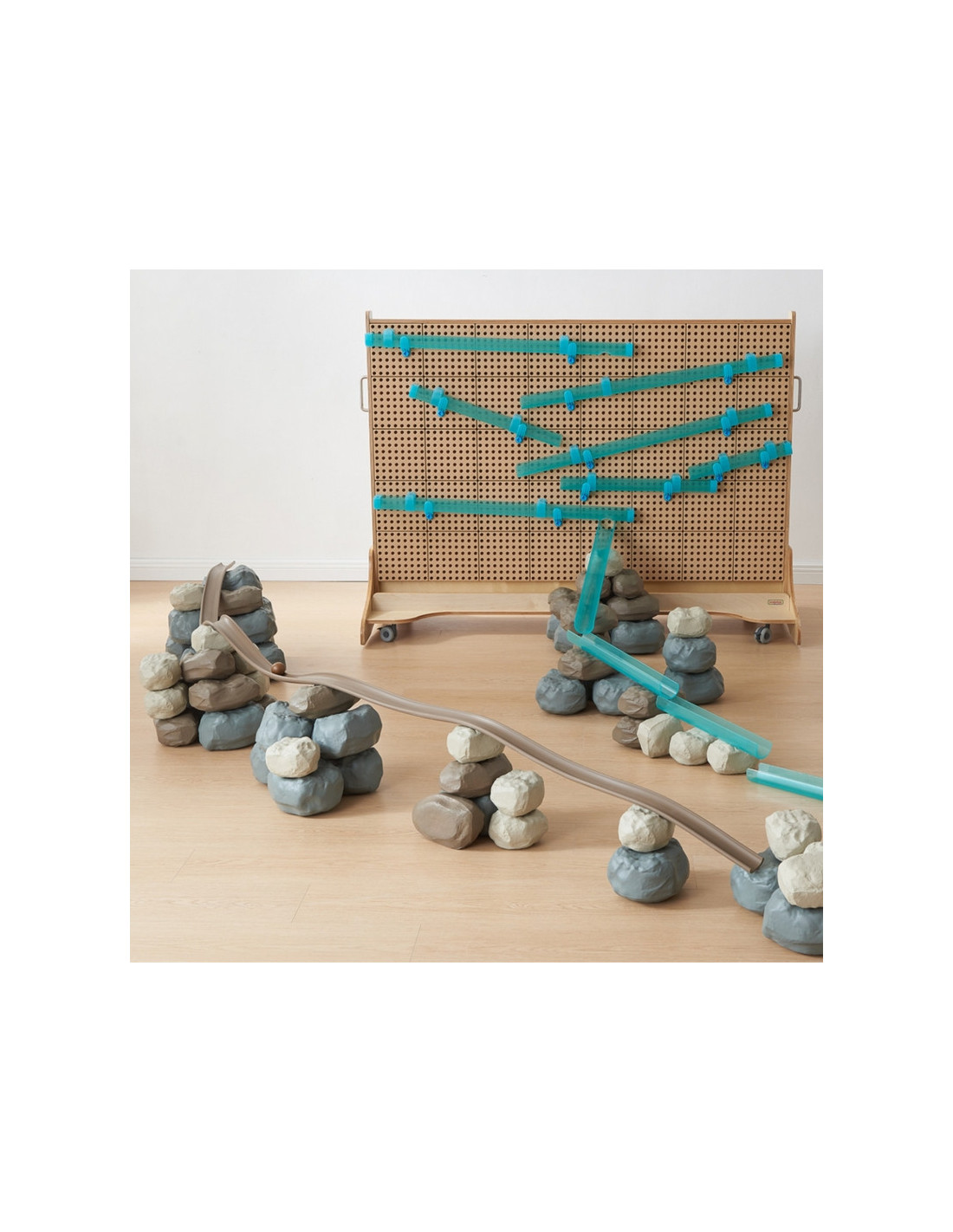 Elastyczny Tor Kulkowy to lekkie, bezpieczne elementy konstrukcyjne wykonane z elastycznego tworzywa sztucznego. Zostały zaprojektowane z myślą o kreatywnej zabawie, umożliwiając budowanie podpór, przeszkód i różnorodnych struktur do torów wyścigowych i eksperymentów z grawitacją. Kamienie można dowolnie układać, tworząc unikalne tory lub konstrukcje wspierające elastyczny tor. Idealnie sprawdzą się jako narzędzie do zabawy w pojedynkę lub w grupie, zachęcając do współpracy i kreatywności.