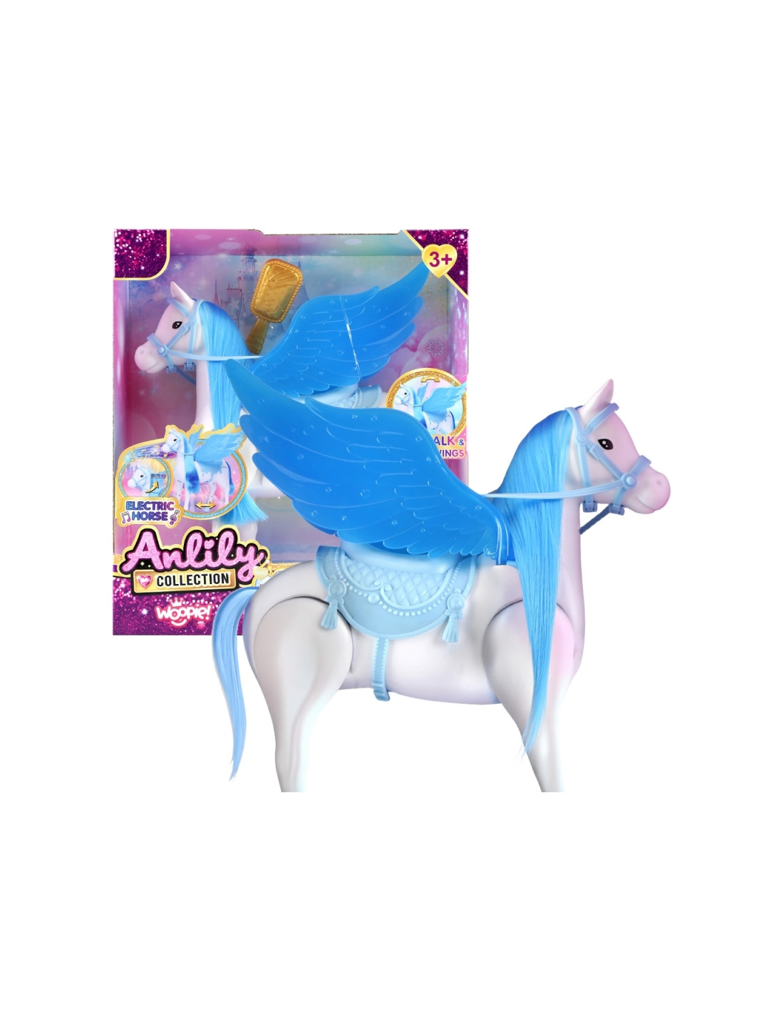 Odkryj niezwykłego Interaktywny Konik Lily, który przeniesie Twoje dziecko do świata magii i fantazji! Ten piękny, biały rumak z turkusową grzywą i skrzydłami to idealny towarzysz każdej zabawy. Dzięki funkcji elektrycznej koń porusza się samodzielnie, dodając emocji i realizmu do bajkowych historii. W zestawie znajdziesz także złotą szczotkę do czesania jego lśniącej grzywy i ogona. To idealny prezent dla małej księżniczki, który zapewni godziny kreatywnej i wciągającej zabawy!