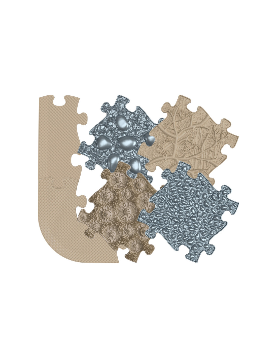 - 4x maty: łąka beżowa miękka, korzenie beżowe twarde, duże kamienie szare twarde, małe kamyki szare twarde