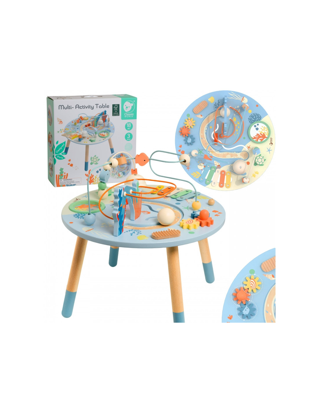 CLASSIC WORLD Drewniany Stolik Aktywności "Morskie Życie" Muzyczno Edukacyjny