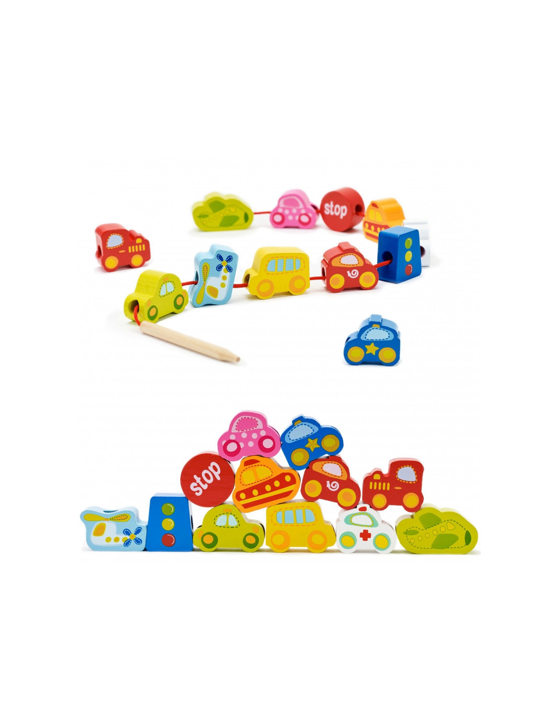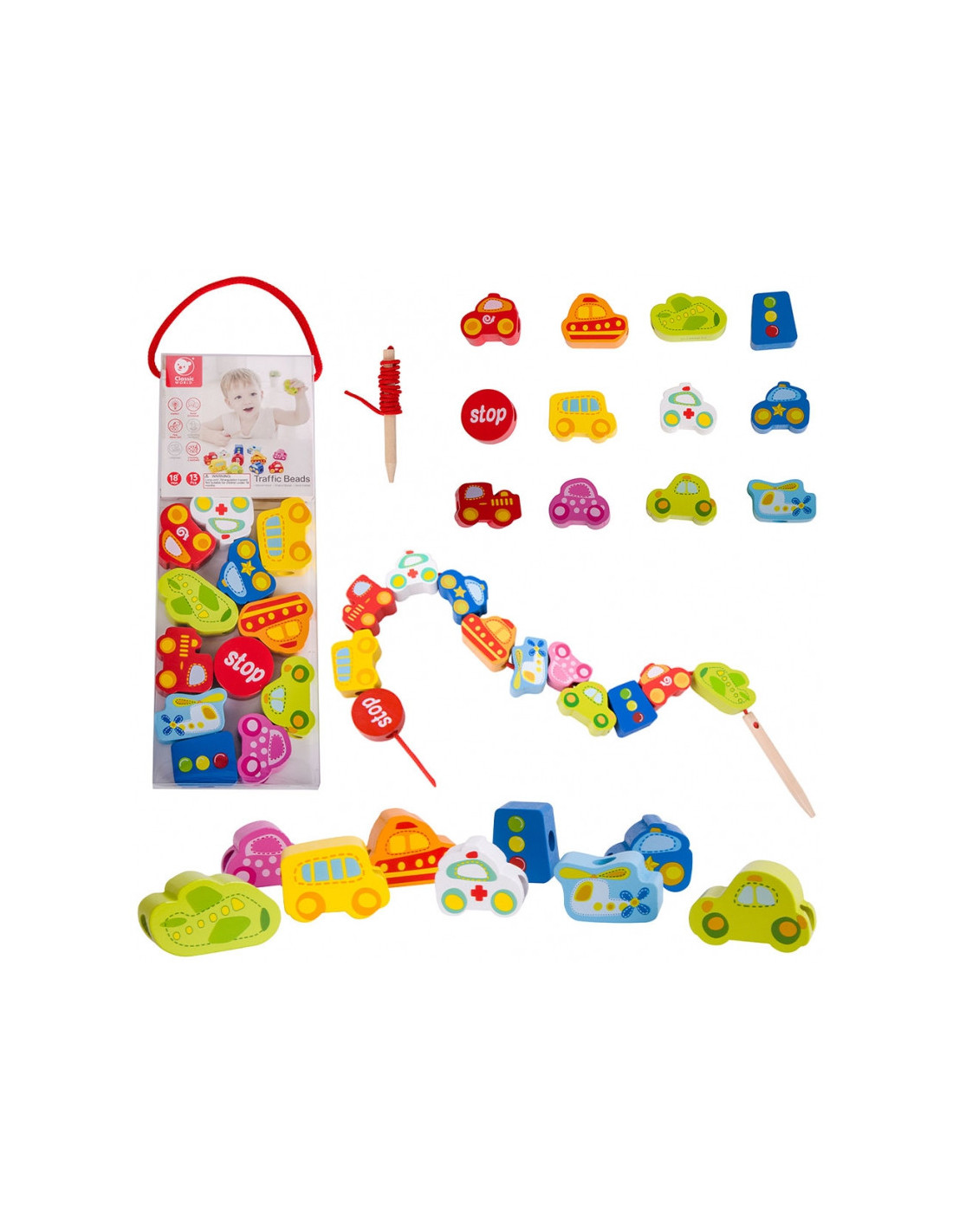 CLASSIC WORLD Drewniane Klocki do Nawlekania Ruch Drogowy 13 el.