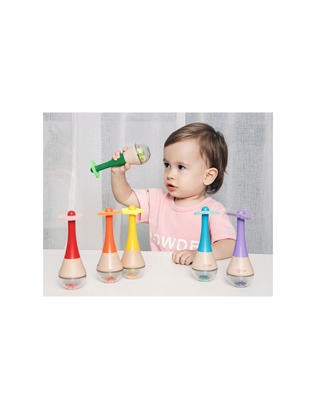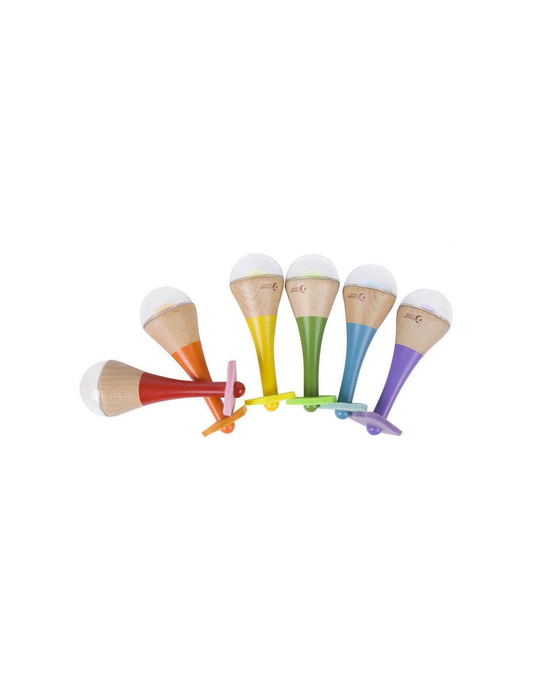 Drewniany Instrument Marakas 2w1 Grzechotka od Classic World to świetny pomysł na prezent dla każdego małego fana muzyki. Dzięki nim dziecko może tworzyć własne rytmy i powoli wchodzić w świat muzyki. Podczas zabawy mogą również zawiesić oko na skaczących koralikach w środku instrumentu. Naucz swoje pociechy rytmu stymulując ich zmysły tymi wspaniałymi marakasami.