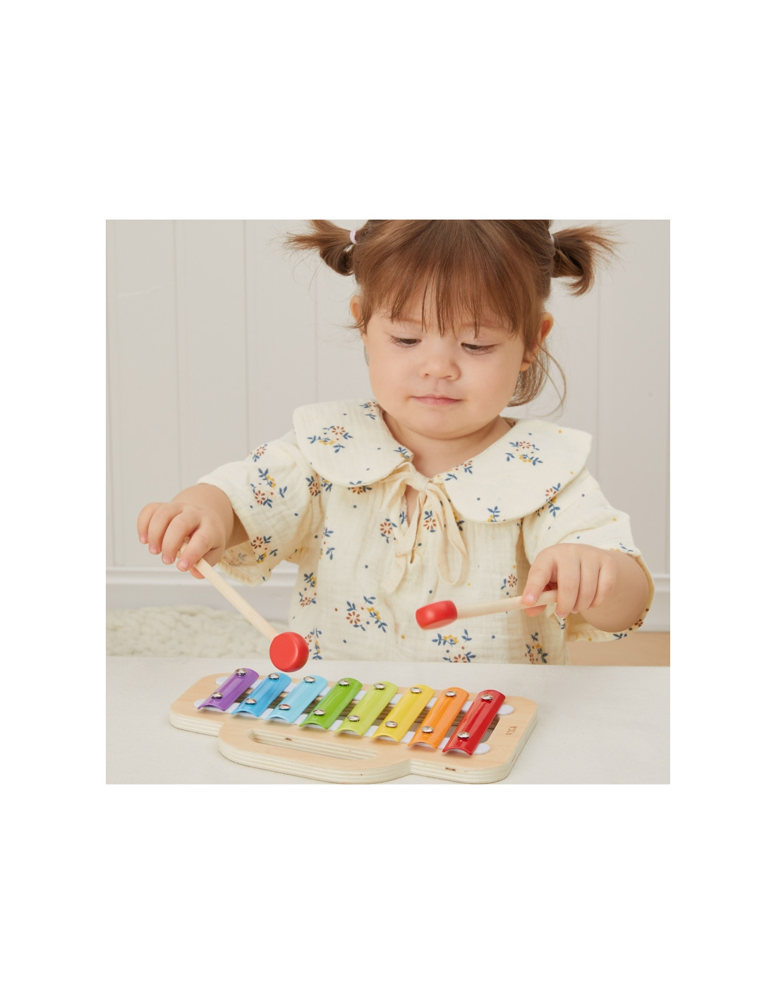 Ten kolorowy, drewniany ksylofon to idealna pierwsza zabawka muzyczna dla dzieci od 18 miesiąca życia. Wydaje 8 czystych tonów, które wprowadzają malucha w świat muzyki i rytmu. Tęczowe kolory przyciągają uwagę i inspirują do zabawy, rozwijając kreatywność i koncentrację. Wbudowany schowek na młoteczki oraz boczny uchwyt sprawiają, że ksylofon jest łatwy do przechowywania i przenoszenia. To doskonały prezent, który łączy zabawę, naukę muzyki i rozwój motoryki małych rączek!