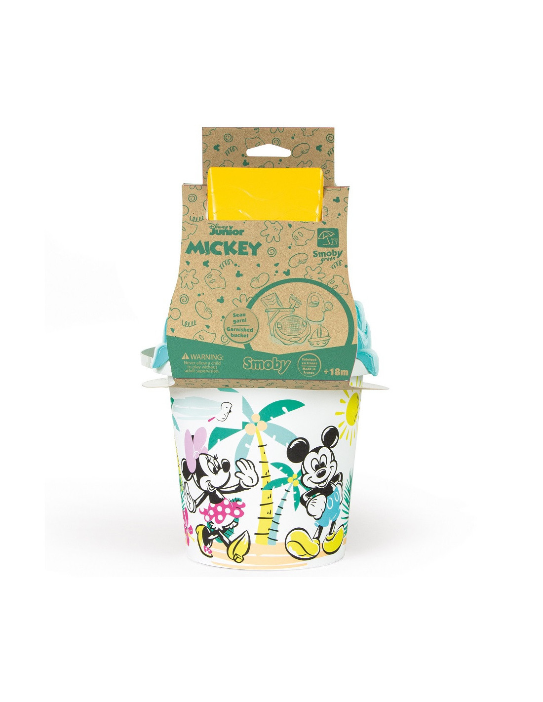 SMOBY Green Mickey and Minnie Mouse Bucket with Sand Accessories and Bioplastic Watering Can