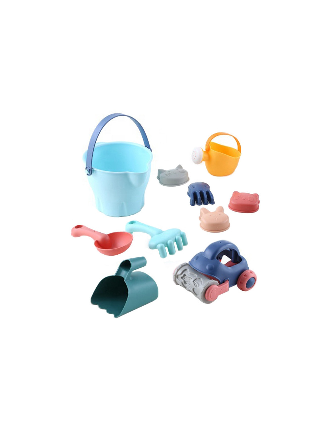 Zestaw do Piasku w Wiaderku od marki WOOPIE to świetny dodatek do piaskownicy, a nawet ogrodu. Zestaw zawiera 10 elementów: wiaderko, konewkę, łyżkę, 4 foremki, łopatkę i grabki oraz samochodzik. Zestaw ma piękny pastelowy design. Wiaderko i konewka ma wygodny uchwyt do przenoszenia. Gwarancja super zabawy w piaskownicy, na plaży, a nawet w ogrodzie!