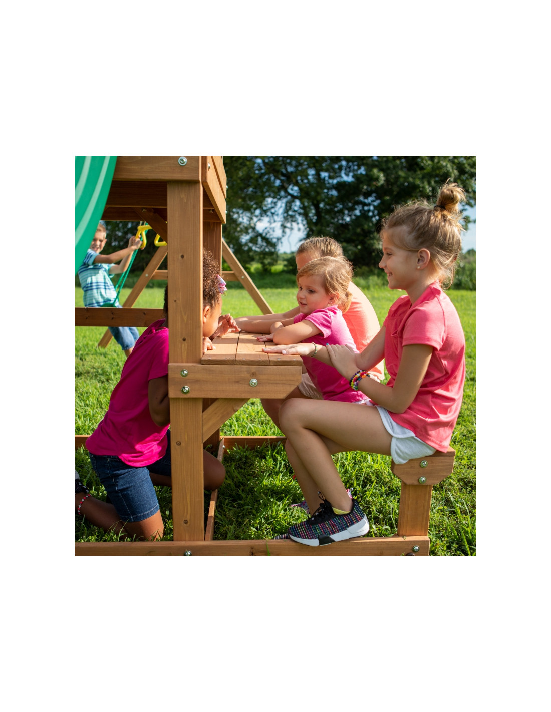 W pełni funkcjonalny duży plac zabaw dla dzieci Belmont marki Backyard Discovery dostarczy dzieciakom multum pomysłów do zabawy – czy to w gronie kolegów i koleżanek, czy też w pojedynkę!