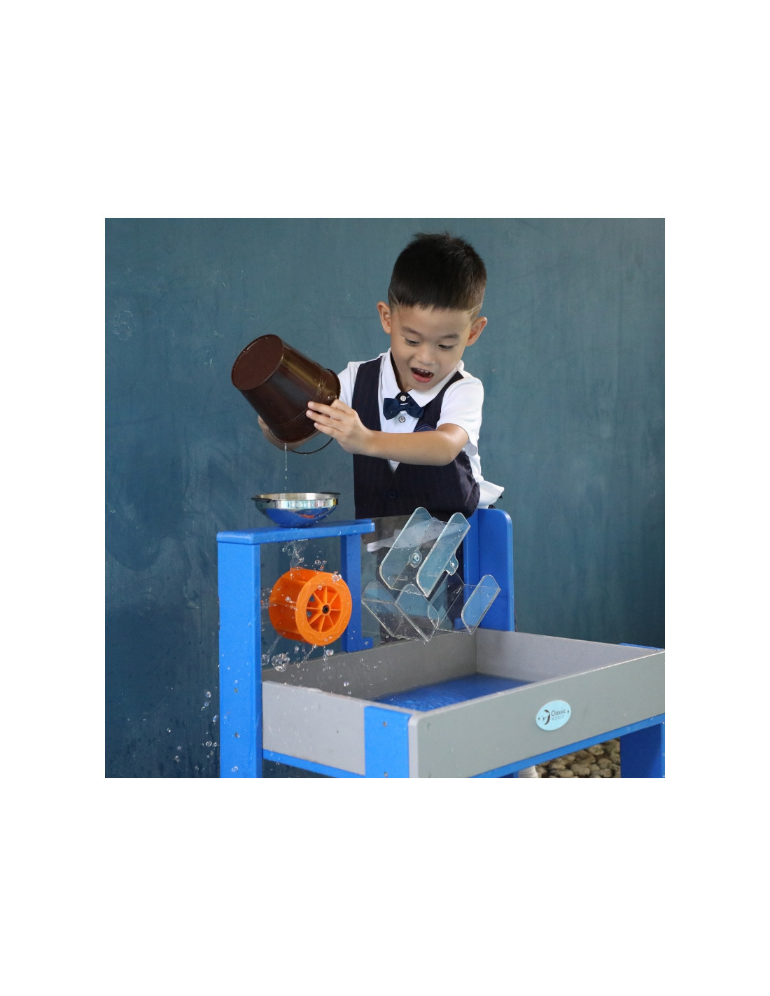Nadaje się zarówno na domowe podwórko jak i na place zabaw oraz do placówek edukacyjnych. Dzięki najwyższej jakości wykonania, twoje dziecko może korzystać z zabawki zarówno w upalne dni- wodą, jak i te chłodniejsze- piaskiem.Przedszkolaki uwielbiają eksperymentować z wodą i sprawdzać, jak zachowuje się w różnych warunkach. Dzięki temu mogą dowiedzieć się o kierunkach przepływu cieczy czy działaniu pompy. Zabawa przy stole zachęca maluchy do zdobywania wiedzy,dodając im pewności siebie. Zestaw wytrzymały i łatwy do złożenia.