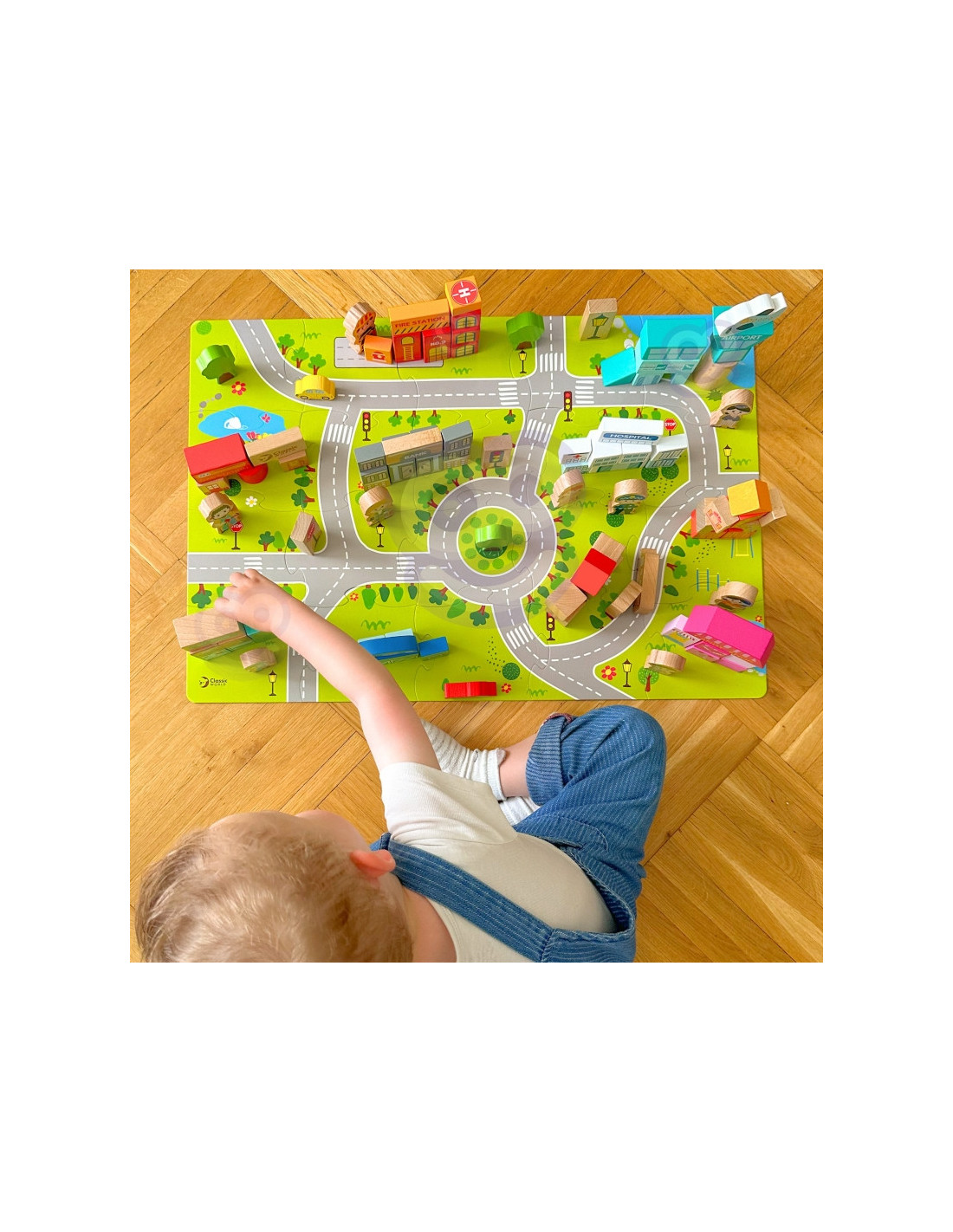 - - 18 puzzli do ułożenia planszy, na której powstanie miasteczko. Jeden element ma wymiar ok. 17 x 14cm,