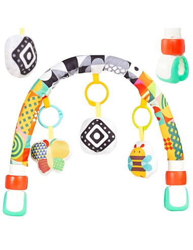 Pałąk edukacyjny to idealna zabawka dla najmłodszych, która wspiera rozwój dziecka już od pierwszych dni życia. Dzięki kolorowym wzorom i miękkim zawieszkom maluszek poznaje kształty, kolory i faktury, rozwijając przy tym zmysły. Zabawka może być łatwo przymocowana do wózka, łóżeczka lub fotelika, zapewniając dziecku atrakcję w domu i w podróży. Różnorodne elementy zachęcają do chwytania, obserwowania i dotykania, co wspiera rozwój motoryki małej. To bezpieczna i funkcjonalna propozycja, która łączy zabawę z nauką.
