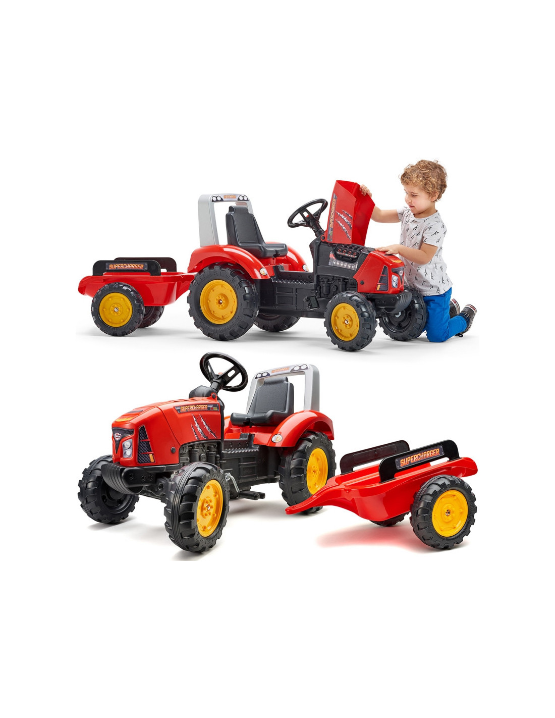FALK Traktorek Red Supercharger na Pedały z Przyczepką Otwierany od 3 Lat