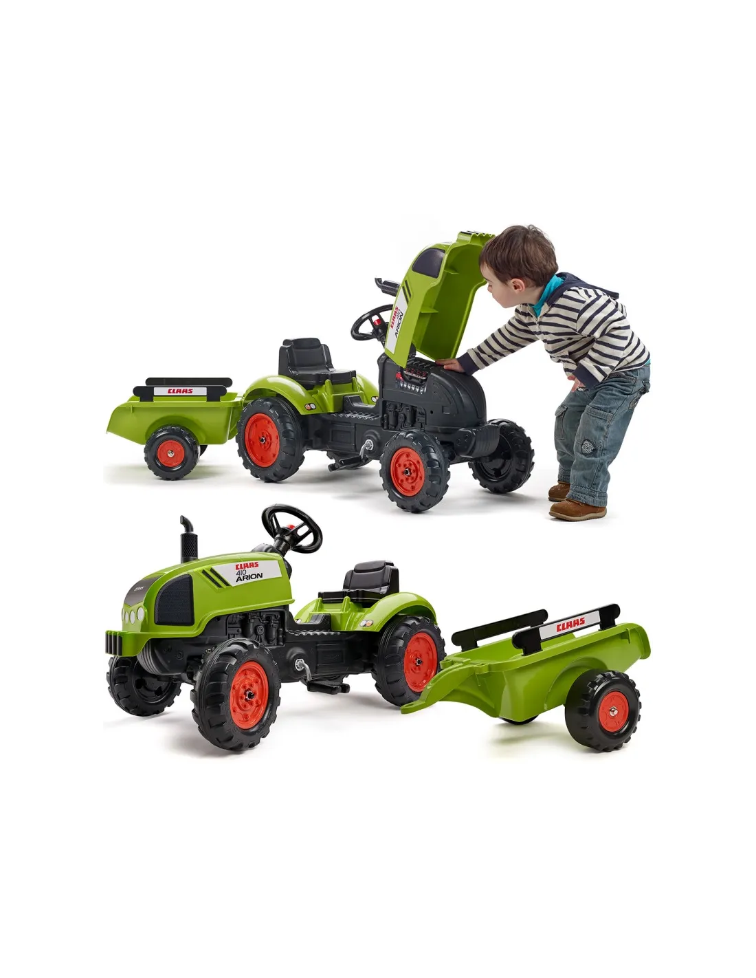 FALK Claas Green Pedal Tractor with Horn and Trailer 2-5 Years