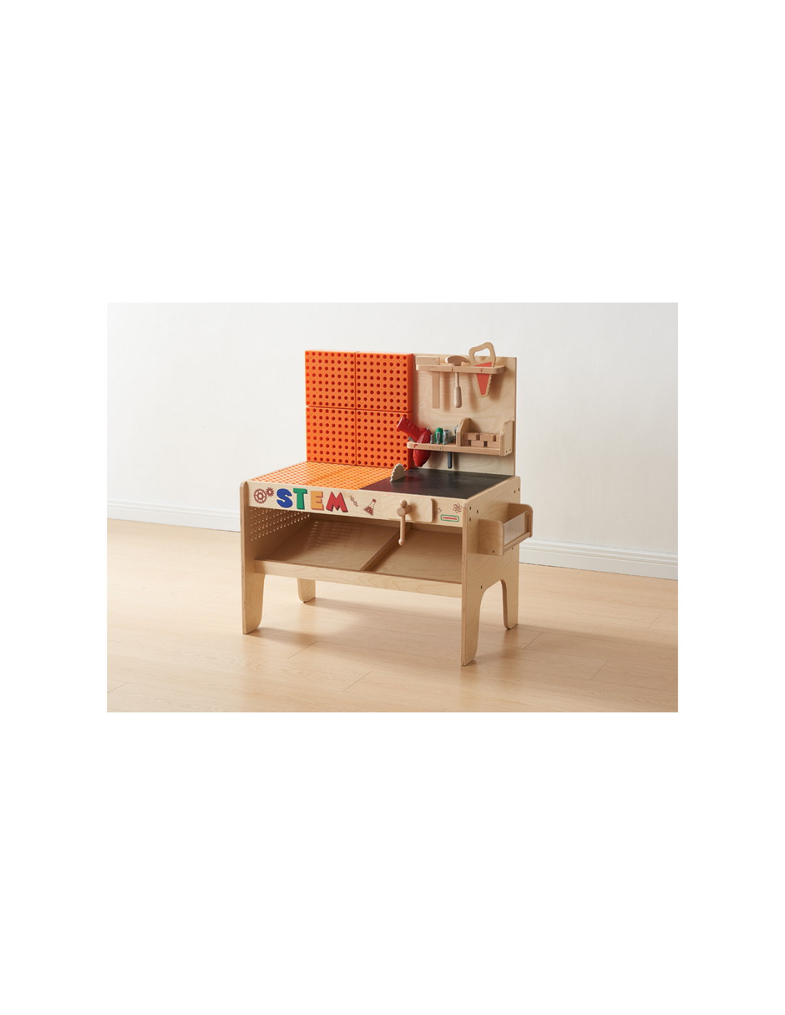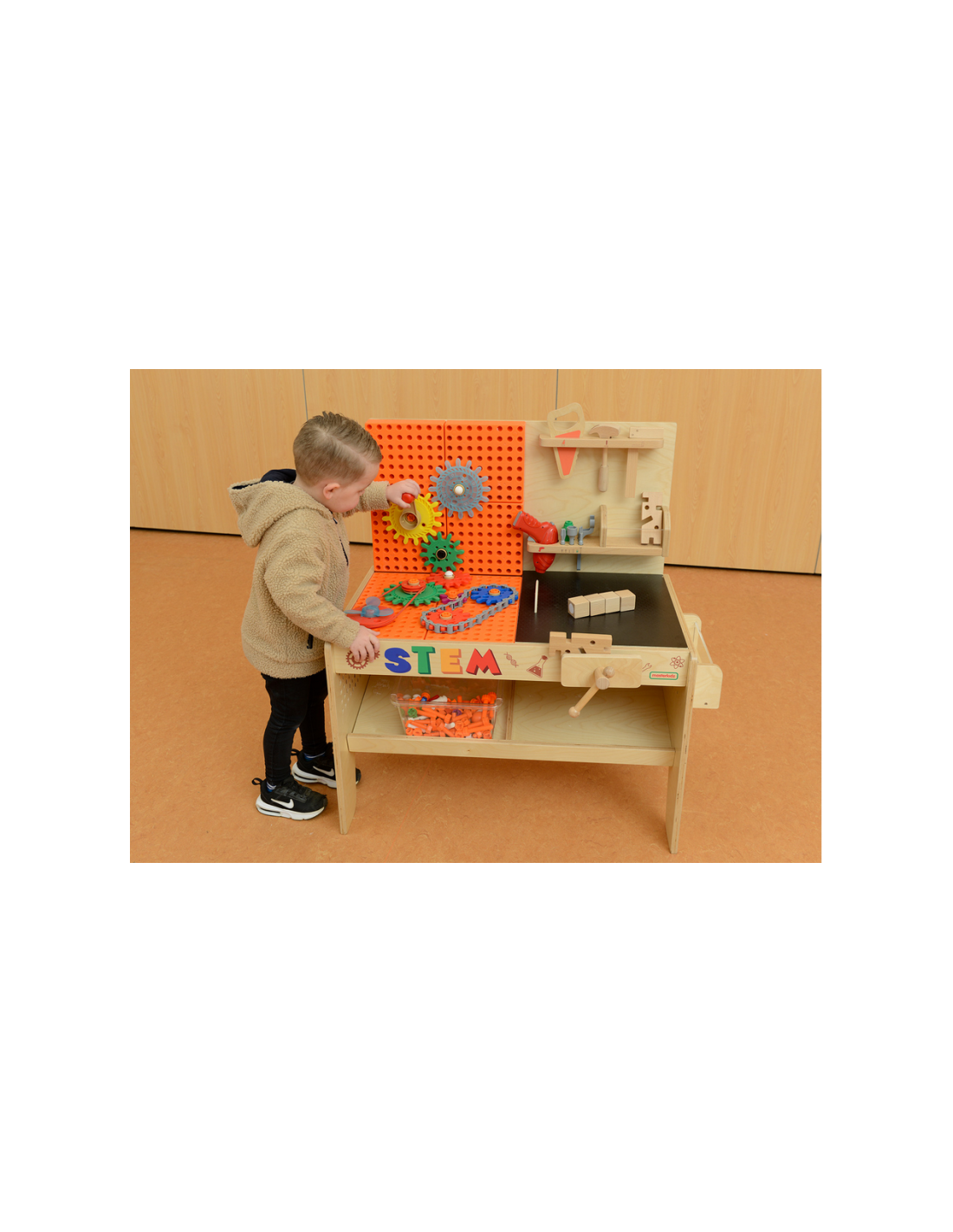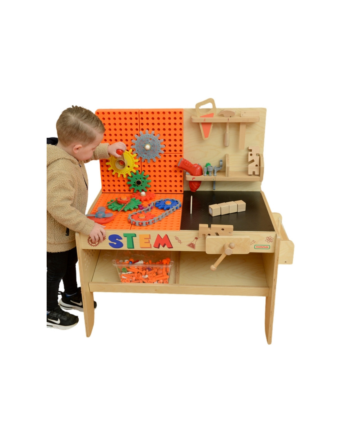 Drewniany warsztat STEM od marki Masterkidz to idealne miejsce do eksperymentowania, która rozwija kreatywność i umiejętności techniczne dziecka. Wykonany z wysokiej jakości drewna, łączy zabawę z nauką, umożliwiając dzieciom odkrywanie zasad mechaniki, inżynierii i fizyki. Realistycznie wyglądający warsztat będzie super atrakcją w każdej klasie lub pokoju zabaw, zachęcając dzieci do tworzenia działających systemów i budowania z wykorzystaniem realistycznych narzędzi.