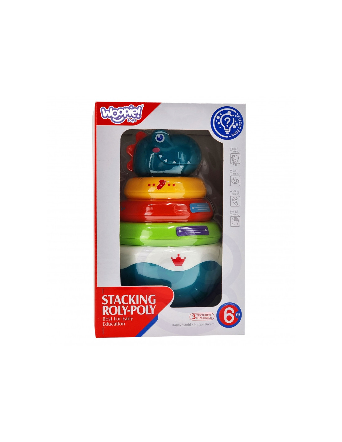 Układanka Piramidka Dino od marki WOOPIE rozwinie zmysły Twojego dziecka! Zabawka bazuje na rozwoju sensoryki - równowagi i dotyku. Dodatkowo posiada funkcje układanki piramidki z balansem. Dziecko może ułożyć aż 6 elementów o różnym kształcie, co rozwija zdolności manualne u malucha. Wszystko co potrzeba do prawidłowego rozwoju dziecka na wczesnym etapie życia!