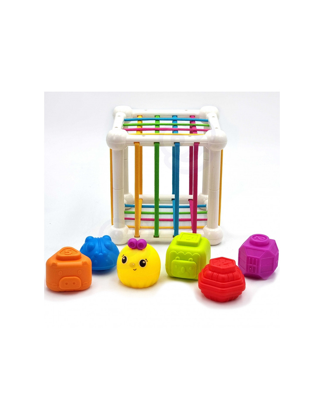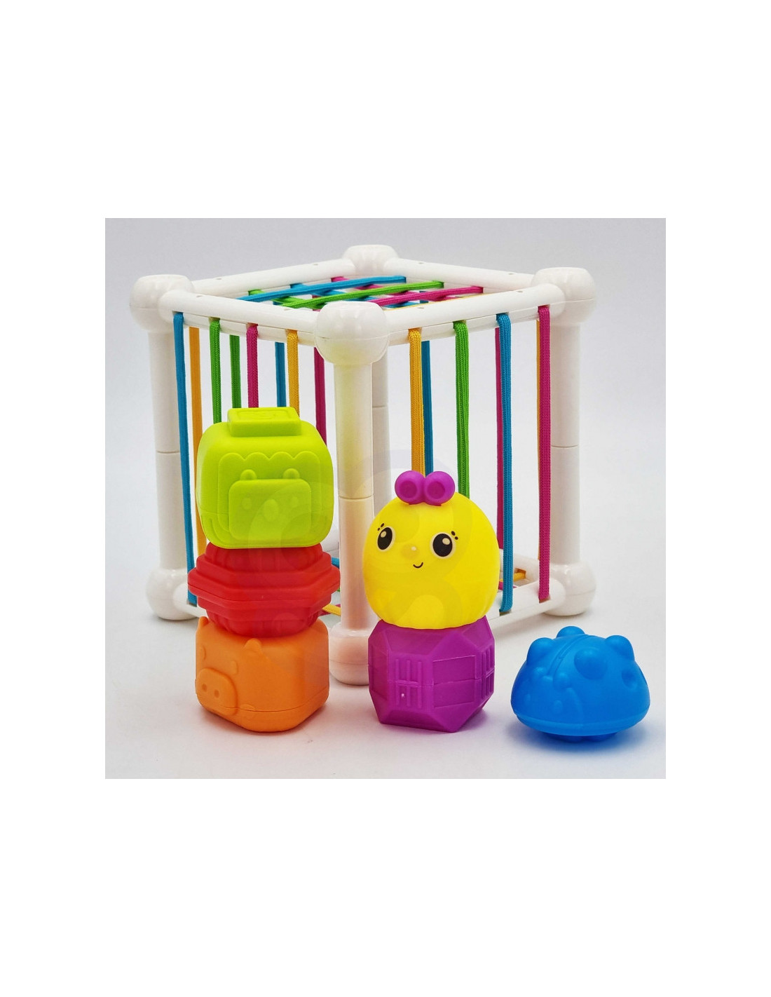 - - w zestawie: kostka-sorter + 6 twardych klocków sensorycznych,