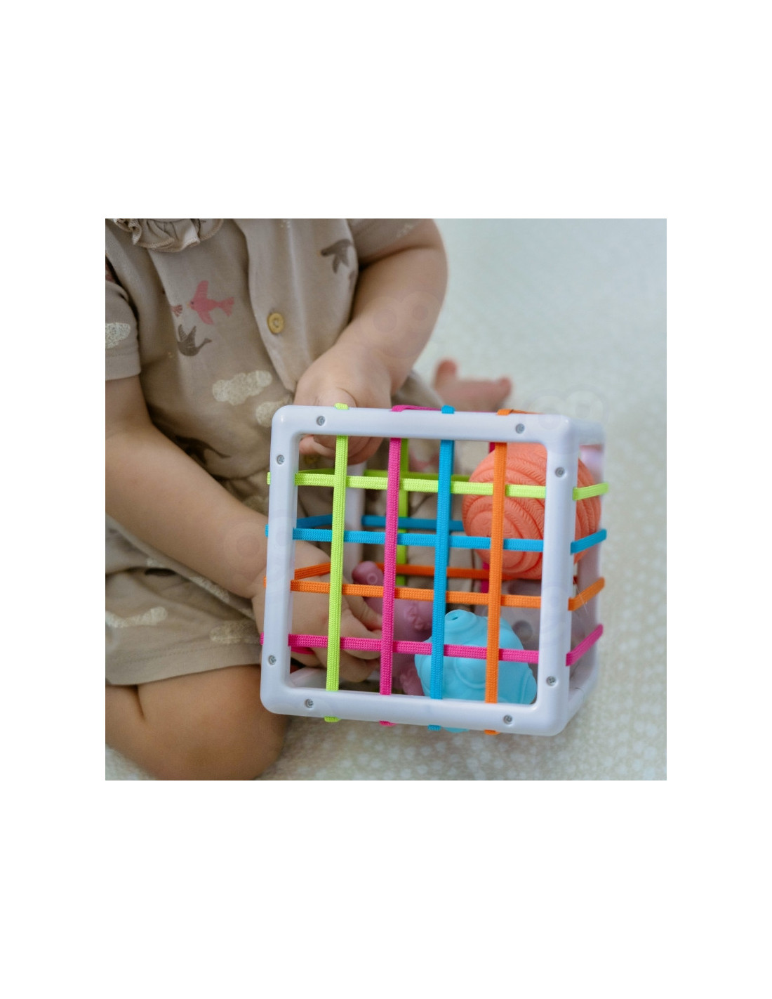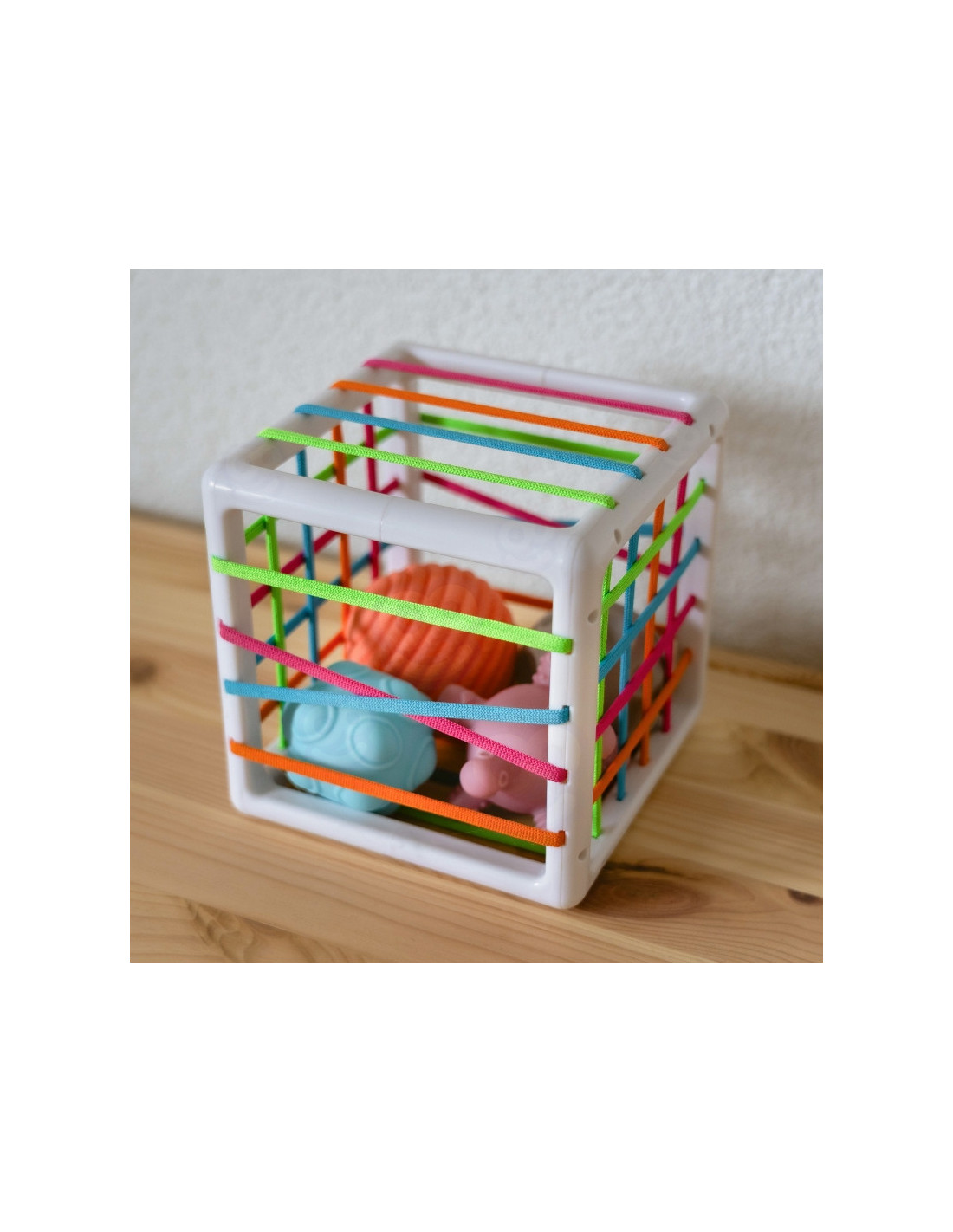 - - w zestawie: kostka-sorter + 4 miękkie klocki sensoryczne,