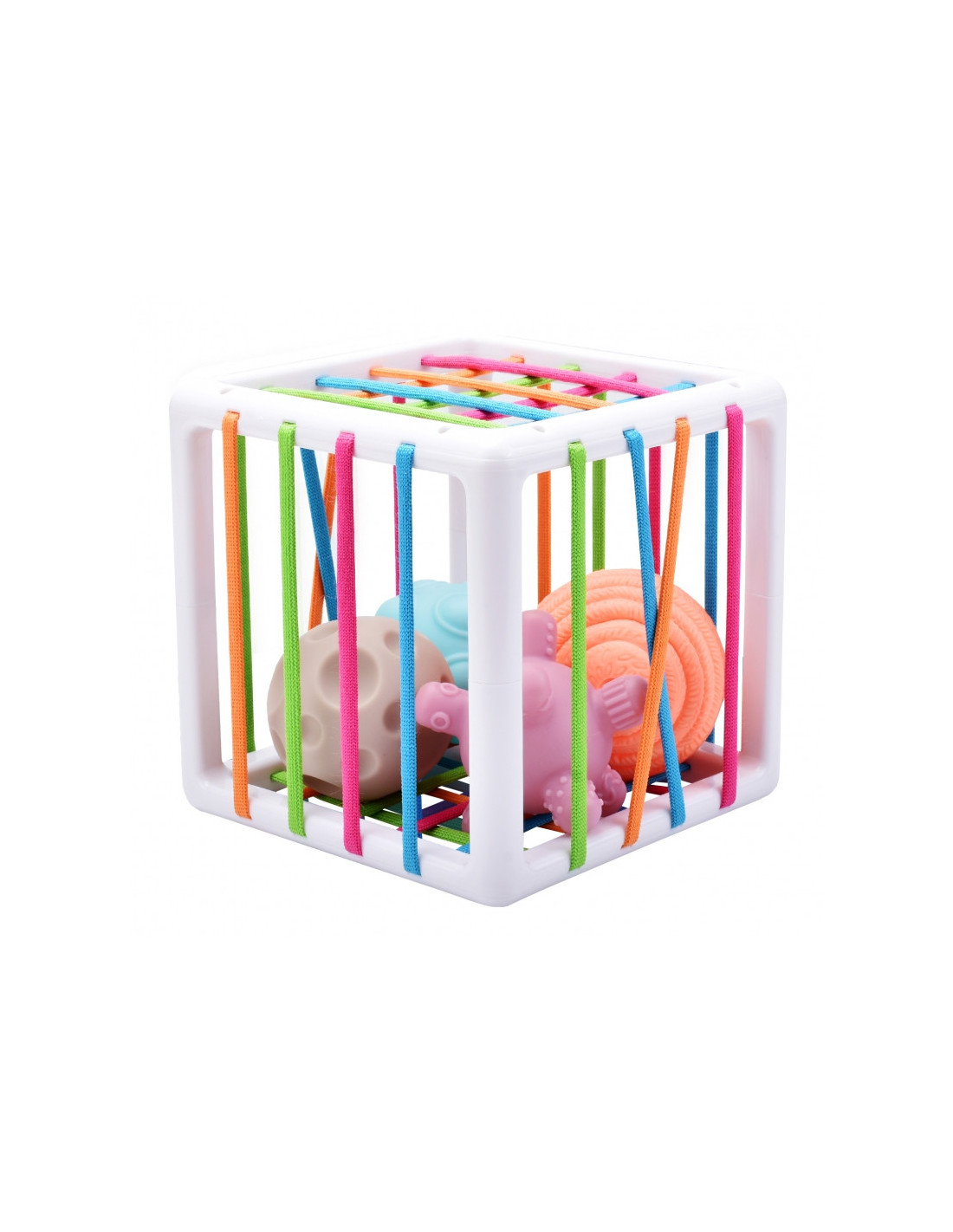 Elastyczna Kostka Sensoryczna od marki WOOPIE pobudzi rozwój Twojego dziecka! Zabawa dziecka polega na wkładaniu i wyjmowaniu elementów z edukacyjnej kostki. Dziecko podczas zabawy rozwija zmysły oraz poprawia zdolności manualne. Każdy z 4 klocków wyróżnia się, co budzi ciekawość dziecka na tyle, by chciało je wyciągnąć i włożyć z powrotem do sortera. Klocki są miękkie i można je ściskać oraz posiadają różne kształty, tekstury tak, aby rozwinąć sensorykę, umysł i zachęcić dziecko do eksperymentowania. Klocki dodatkowo można wykorzystać w celu nauki kształtów i kolorów. Kostka-sorter posiada elastyczne kolorowe gumeczki przyjemne dla dziecka. Niezbędna zabawka dla dziecka we wczesnym etapie życia!