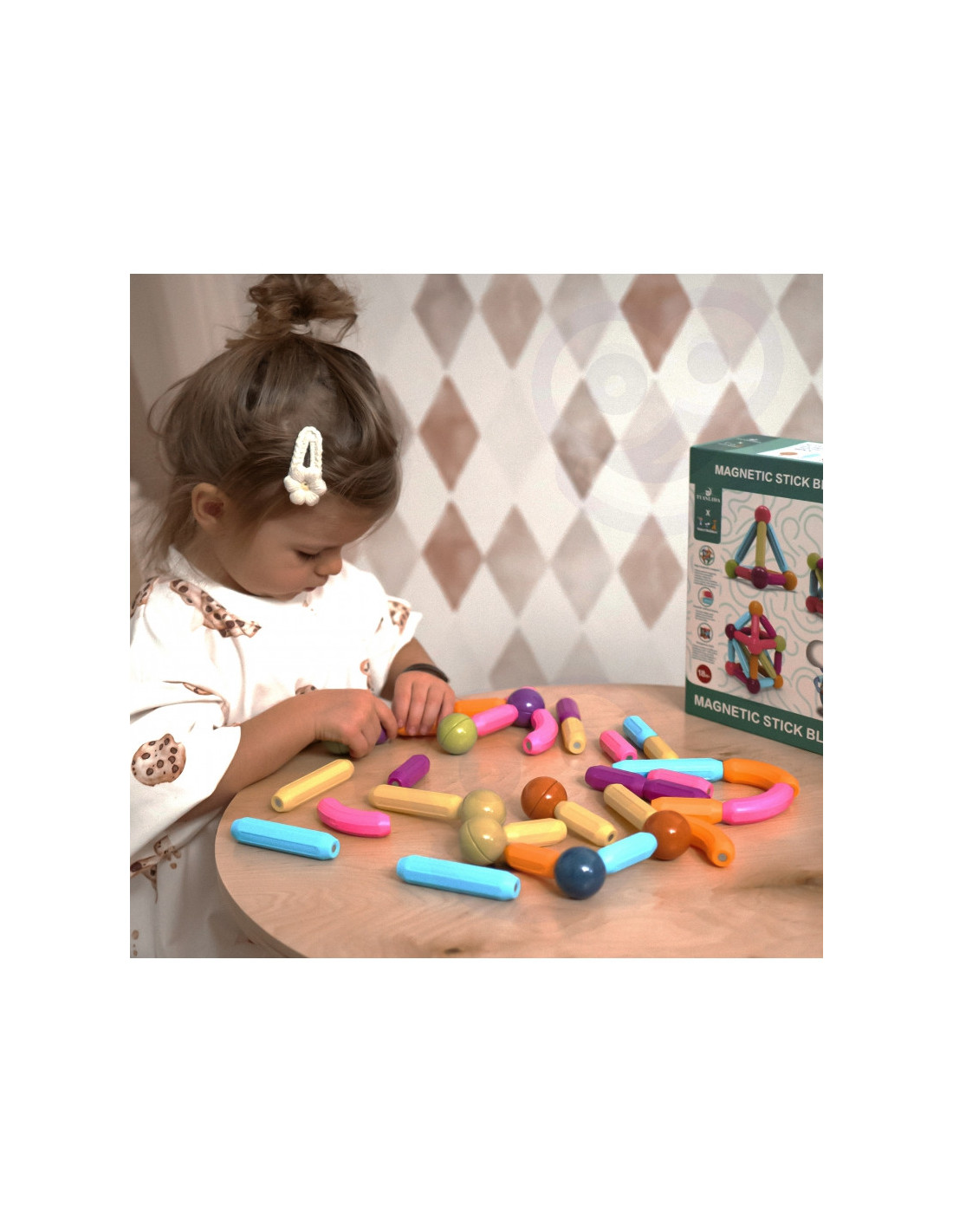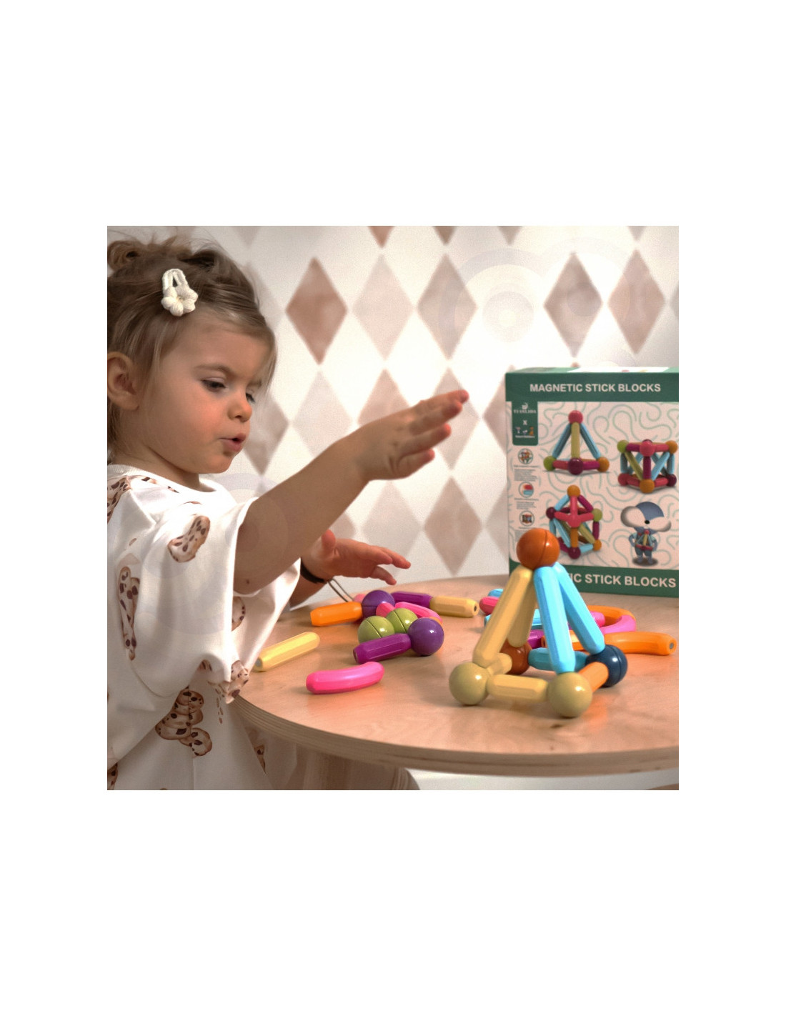 Zestaw grubych klocków magnetycznych od marki WOOPIE łączy ze sobą zabawę i naukę! Wystarczy, że młody konstruktor połączy ze sobą elementy i zacznie tworzyć wymyślne budowle oraz wiele innych układów np. figury geometryczne czy mini domek! Ograniczeniem jest tylko wyobraźnia. Zestaw zawiera 28 elementów oraz dodatkowo książeczkę z instrukcją i przykładowymi wzorami. Klocki są grube, różnokolorowe i bezpieczne - idealne dla rączek małych dzieci. Wszystko zapakowane w wygodną skrzyneczkę. Układanie konstrukcji z klocków rozwija u dziecka kreatywność, zdolności manualne ("małą motorykę"), wyobraźnie przestrzenną oraz koncentrację.