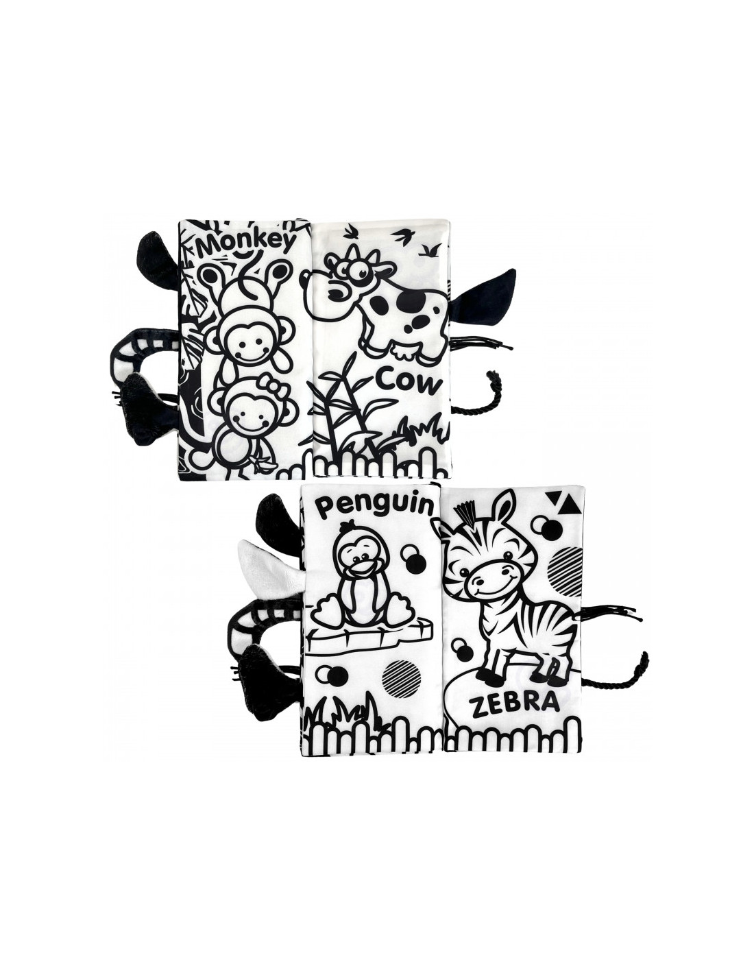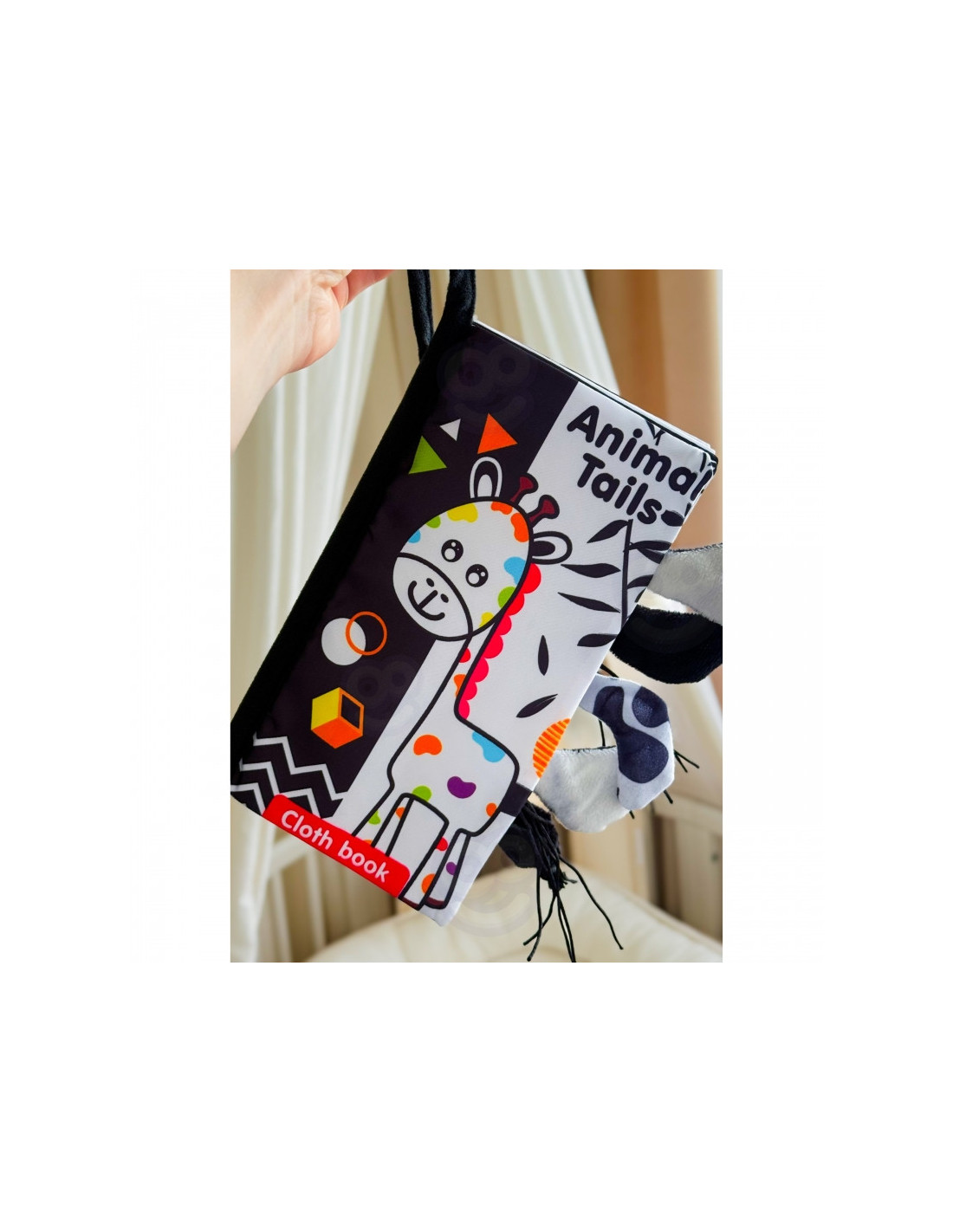 Książeczka kontrastowa od marki Woopie stworzona specjalnie dla maluchów. Szeleszczące i bardzo miękkie w dotyku strony rozwijają zmysły maluszka pełniąc funkcję sensoryczną. Czarno-białe ilustracje trenują wzrok i spostrzegawczość. W każdej ze stron wystają ogonki różnych zwierzątek, łapiąc za nię maluszek ćwiczy koordynację wzrokowo-ruchową. Książeczka może służyć jako zawieszka do wózka lub łóżeczka, mocowana na rzep.