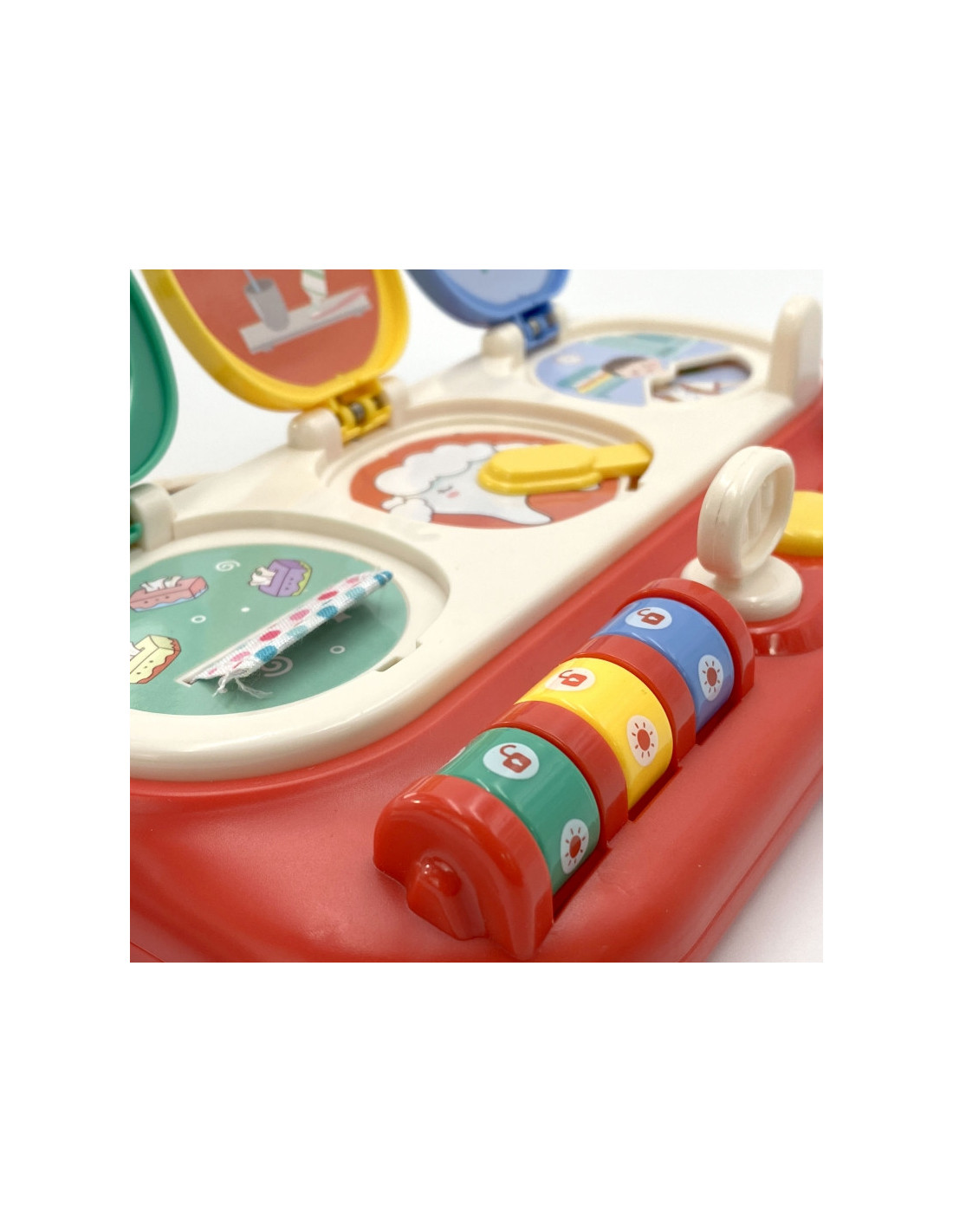 Dziecko odwraca, obraca, wciska i przesuwa różne elementy aby odkryć zawartość każdego okienka. Zabawka pomaga dzieciom rozwijać swoje umiejętności motoryczne, a także uczy je przyczynowo - skutkowego myślenia. Każda akcja ma konkretny efekt, co jest fascynujące dla młodych umysłów i zachęca do dalszej zabawy.