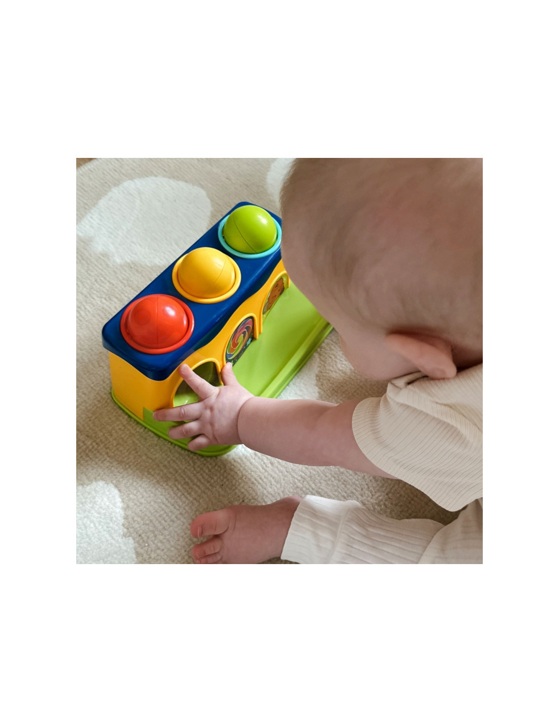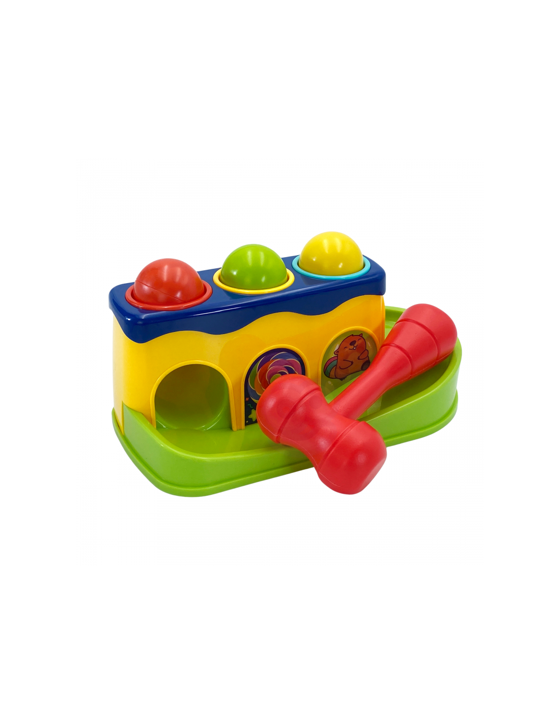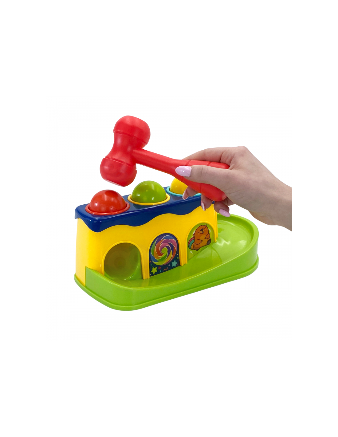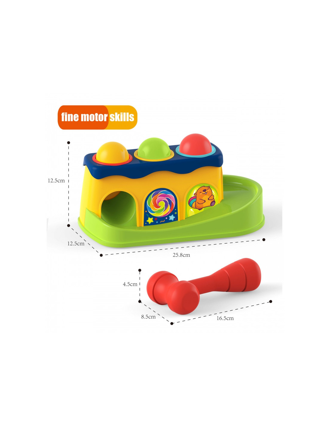 - - poprzez uderzanie w kulki młoteczkiem, maluch ćwiczy zręczność i koordynacje ruchową,