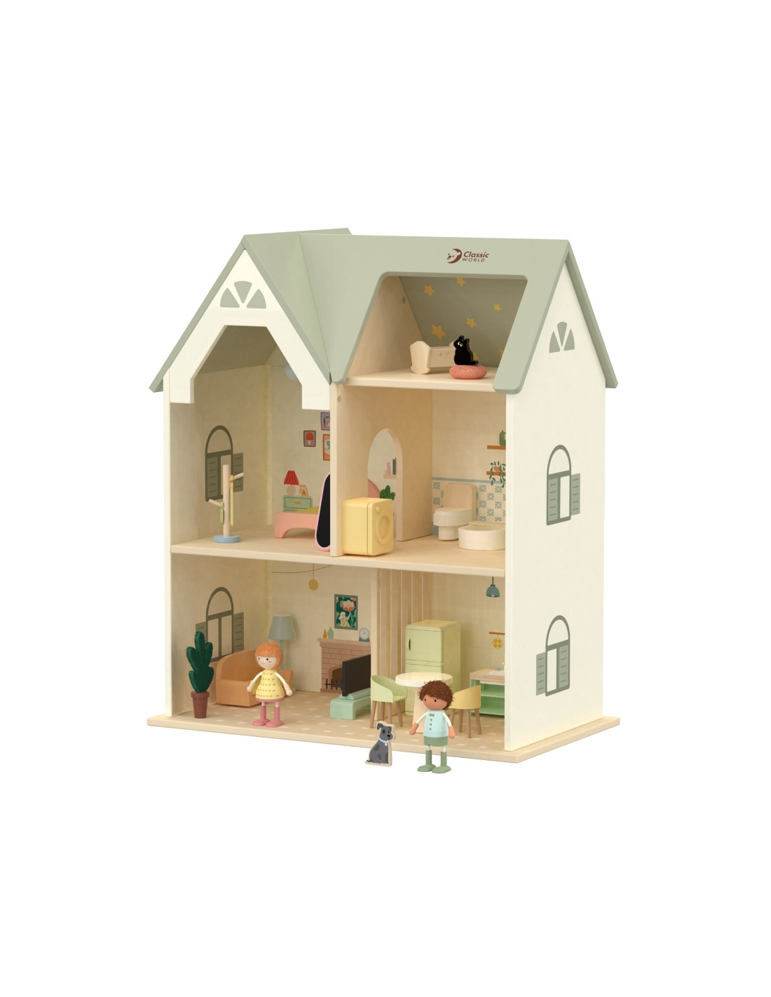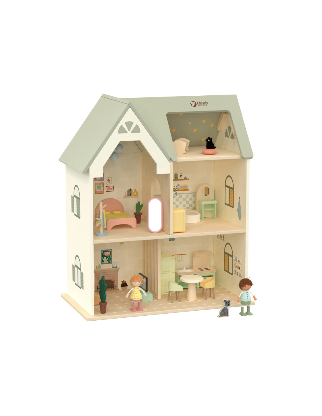 Drewniany domek dla lalek z wyposażeniem – Classic World!