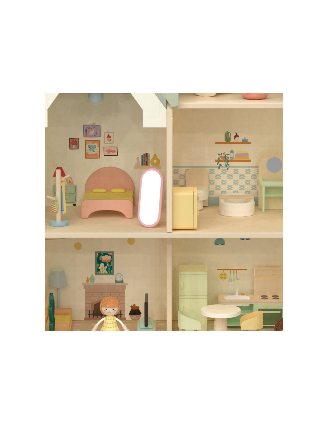 Ten piękny, dwupiętrowy domek z poddaszem to prawdziwa gratka dla małych miłośników kreatywnej zabawy. Pełen uroku, kolorów i funkcjonalnych detali, pozwala dzieciom na tworzenie własnych opowieści i scenek z życia codziennego. Starannie wykonane mebelki, dopracowane wnętrza oraz dołączone figurki zachęcają do wielogodzinnej zabawy w odgrywanie ról.
